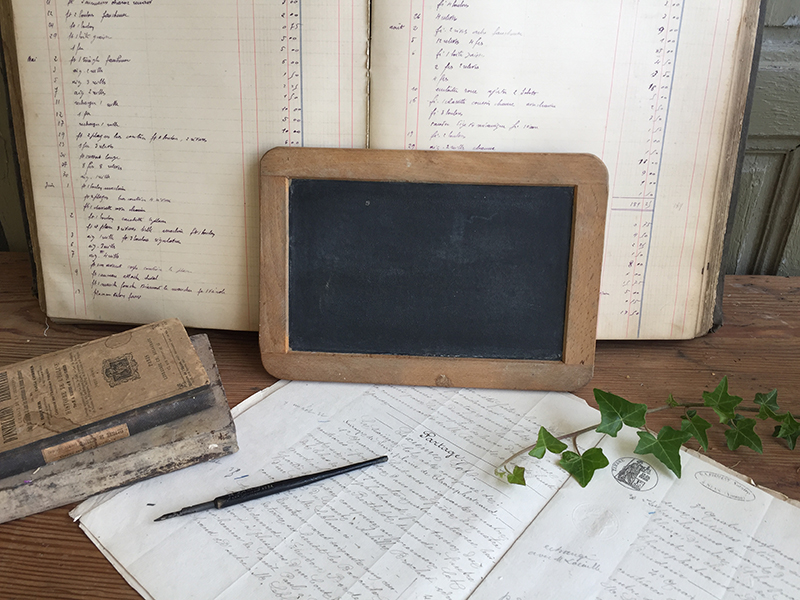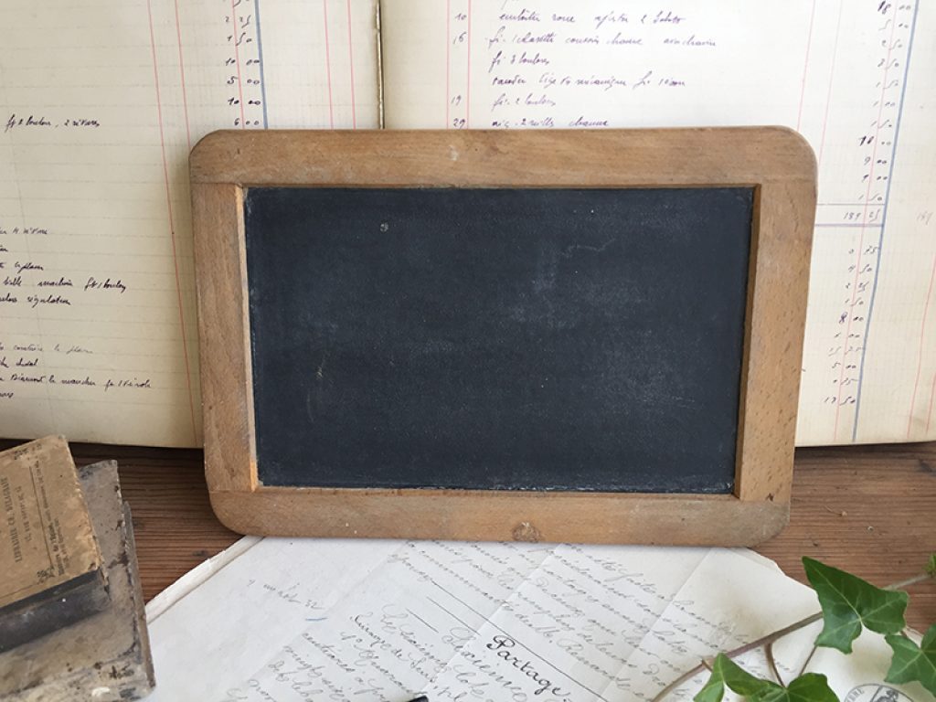 Ancienne ardoise d’écolier, parfaite pour inscrire un petit message à la craie.
