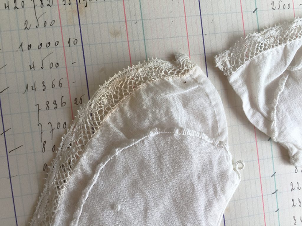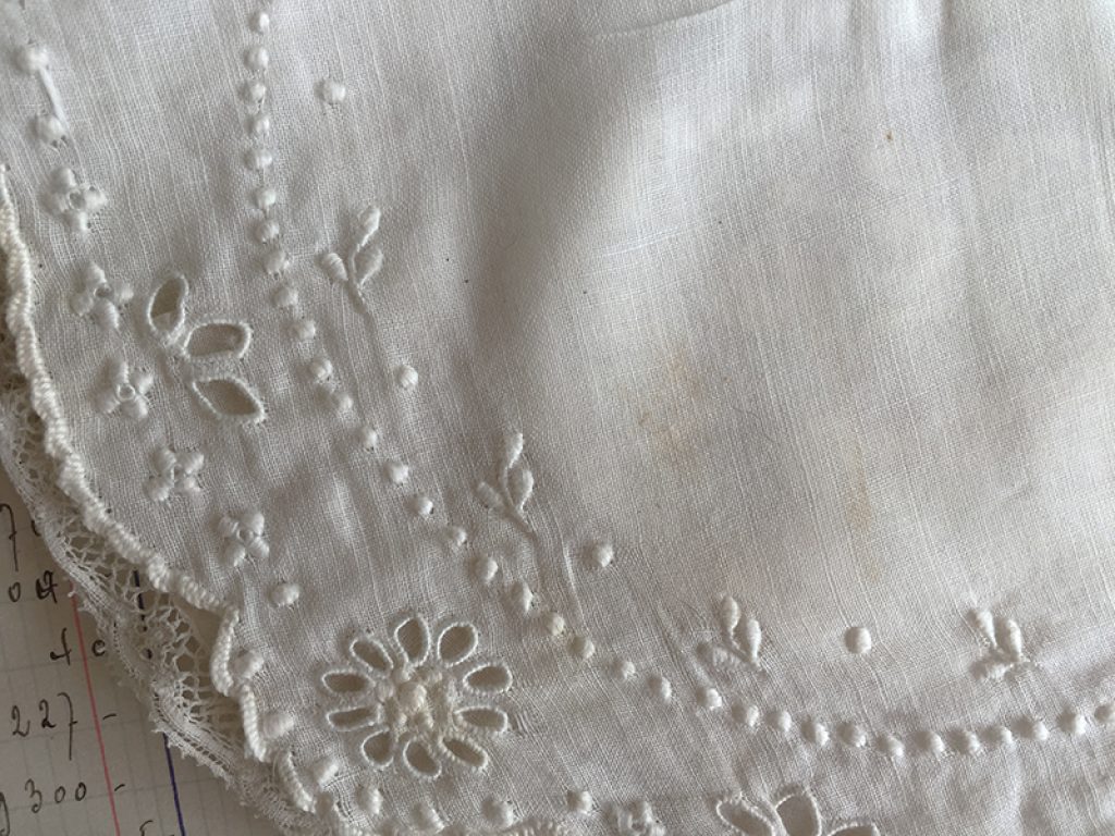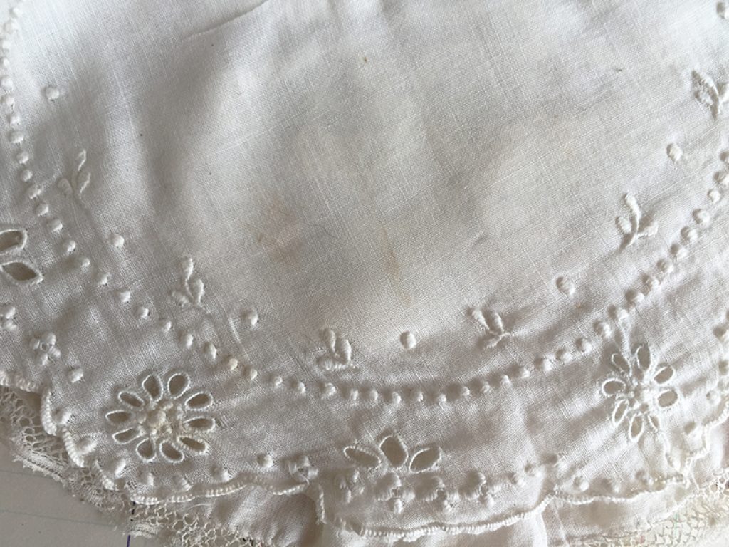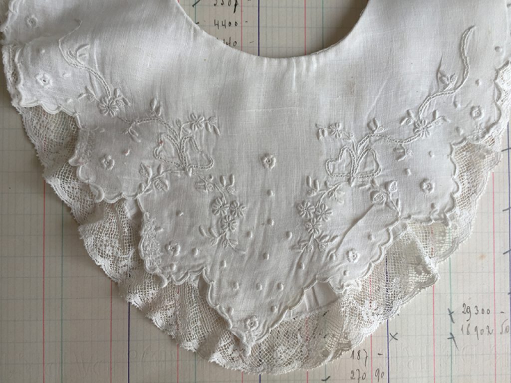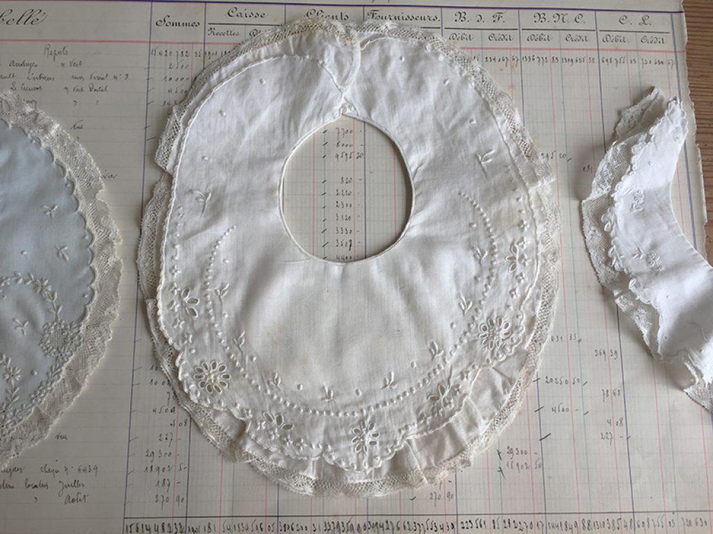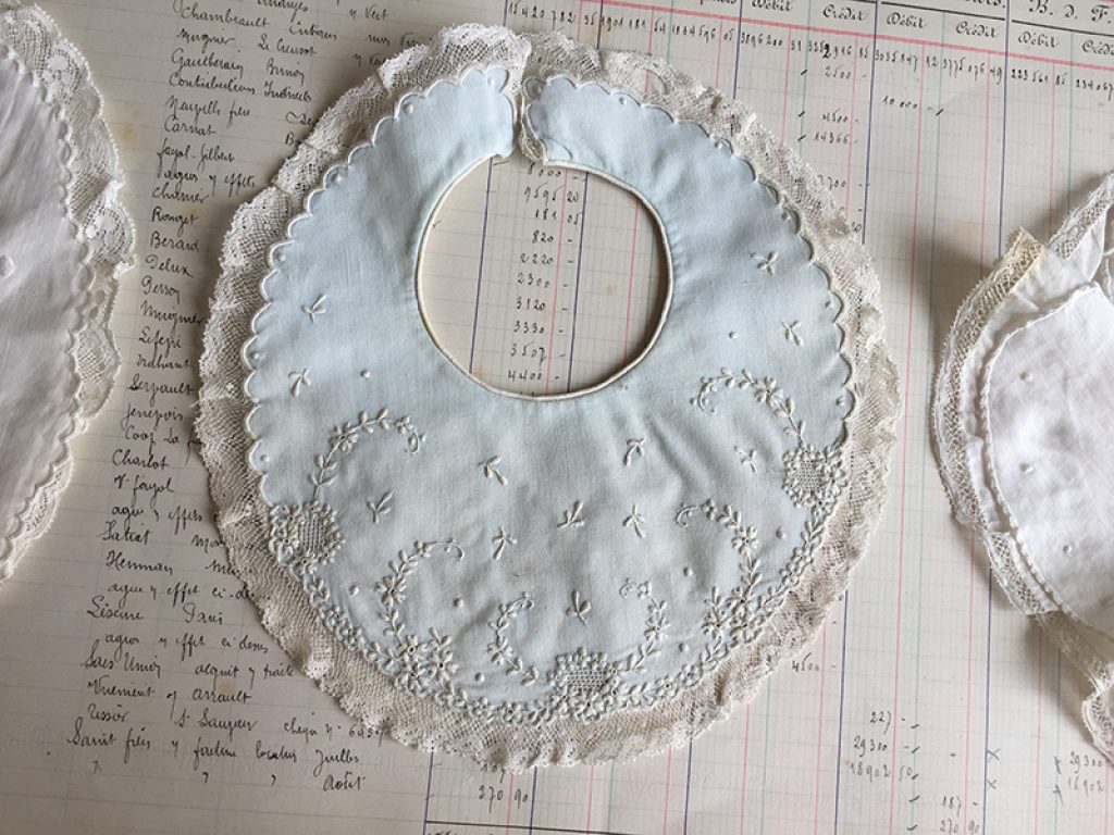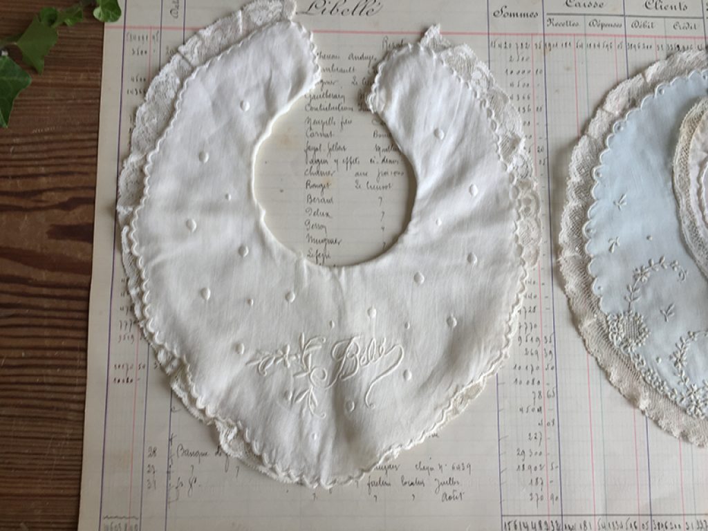 Quatre anciens bavoirs, vendus séparément. Non lavés