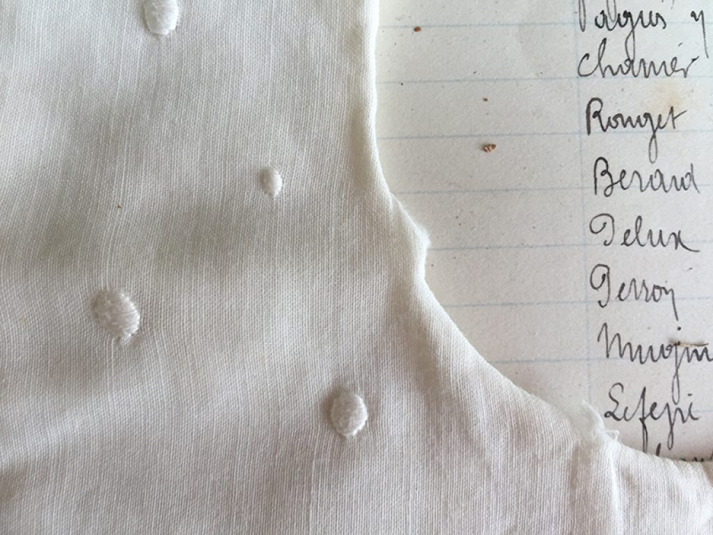 - N°1 , broderie » bébé « , traces d’usure prés du cou, pas de bouton pour la fermeture