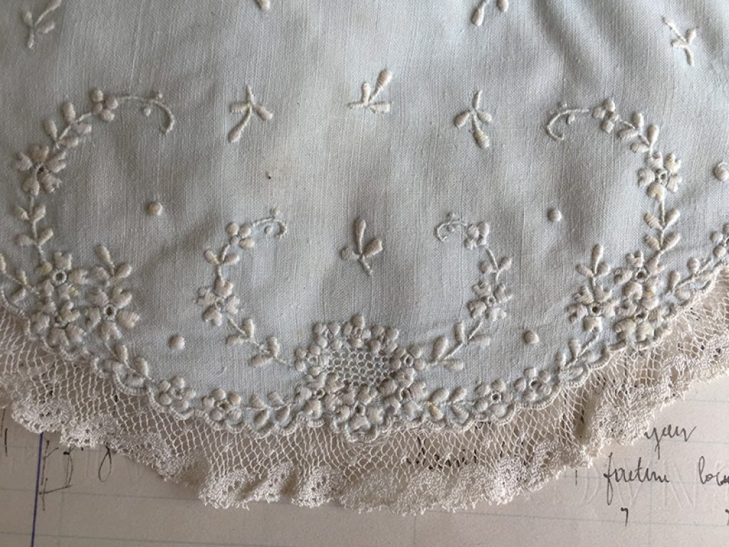 - n° 2, bleu clair, petit trou sur la dentelle du bord