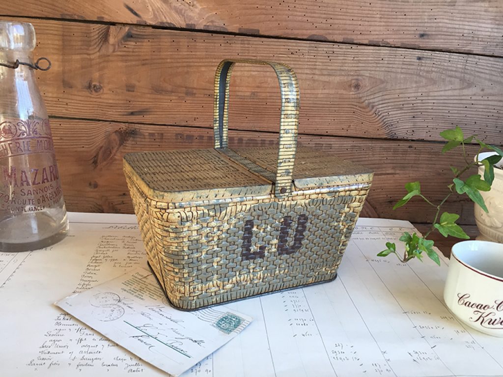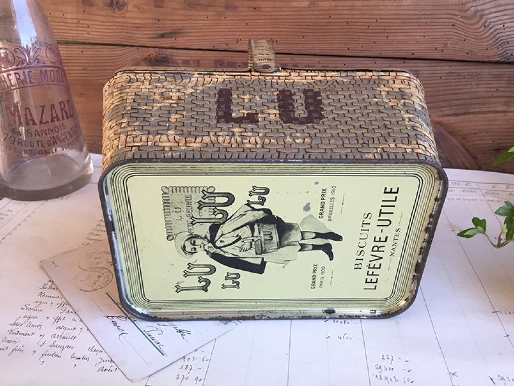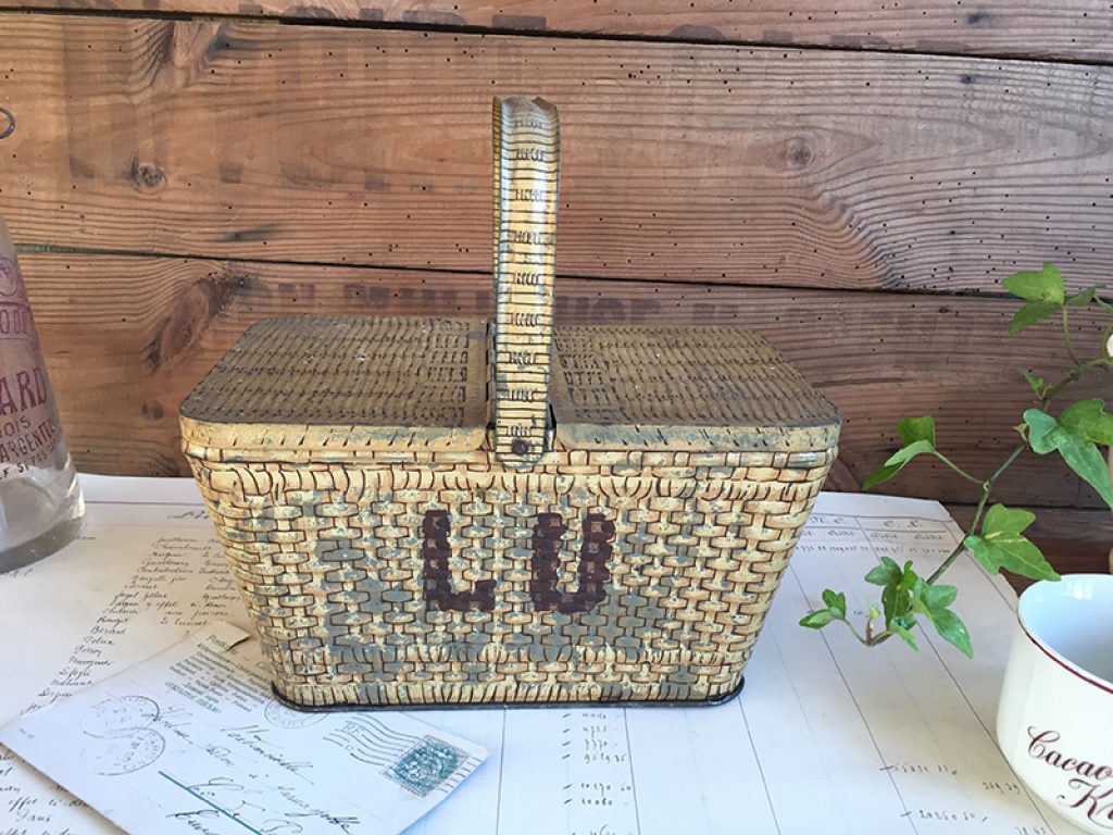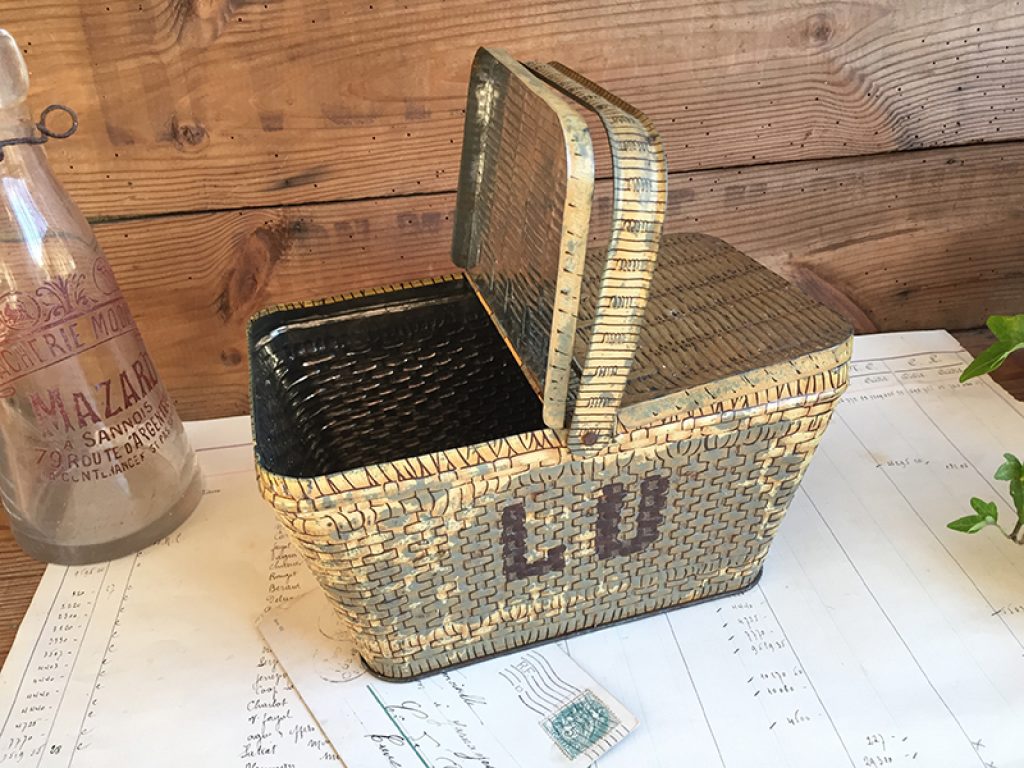 Ancienne boite publicitaire LU Lefèvre Utile en tôle lithographiée, en forme de panier.