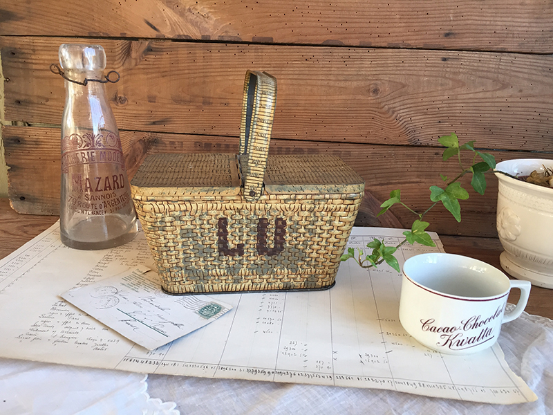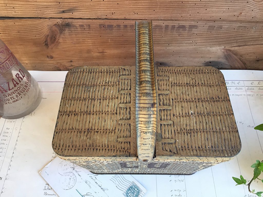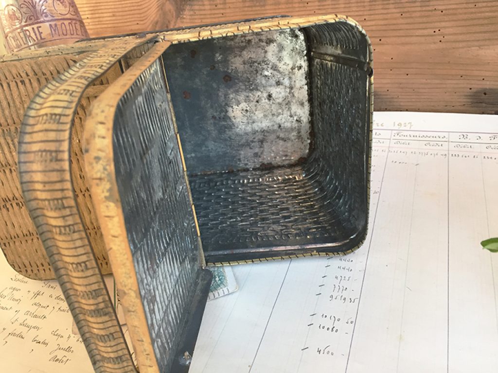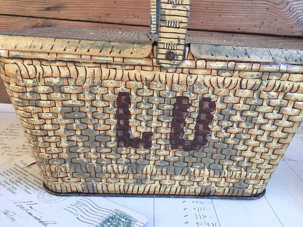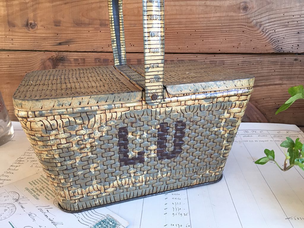 Ancienne boite publicitaire LU Lefèvre Utile en tôle lithographiée, en forme de panier.
