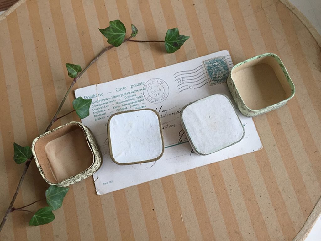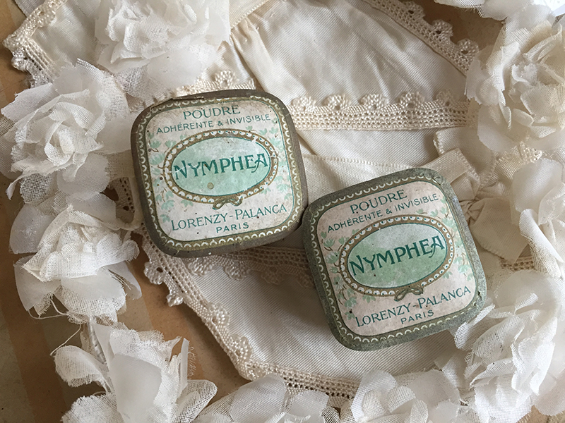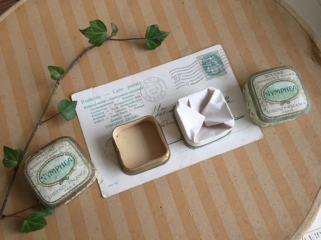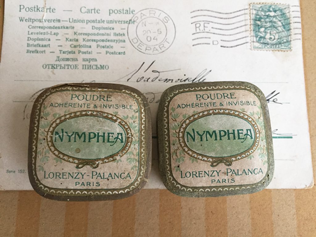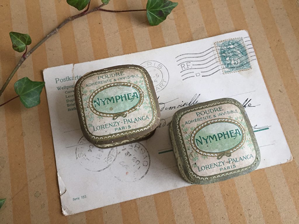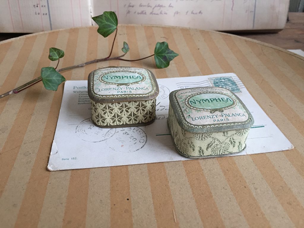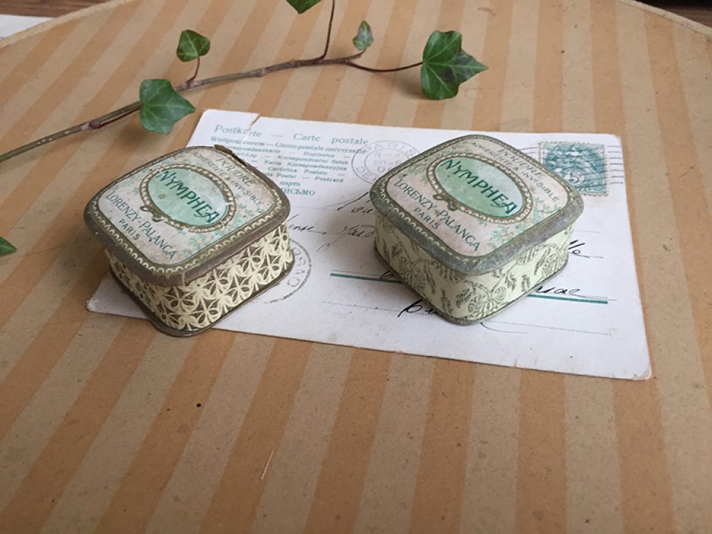 Deux anciennes boites publicitaires de poudre de riz en carton ( vides ) pour déco ou collection. Vendues séparément. Traces d’usage dues à leur âge.