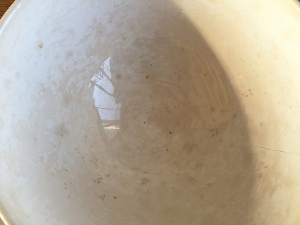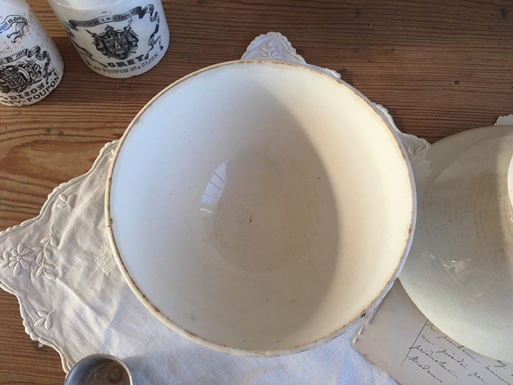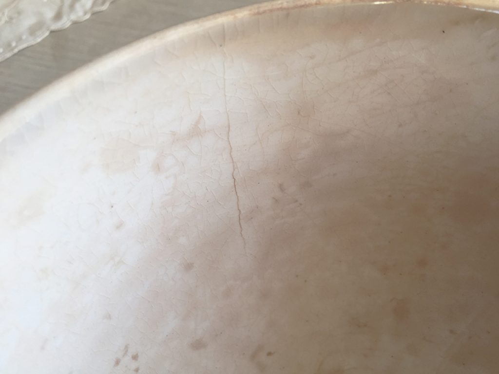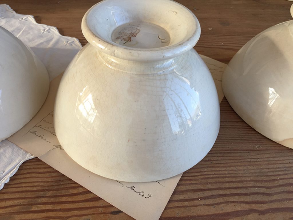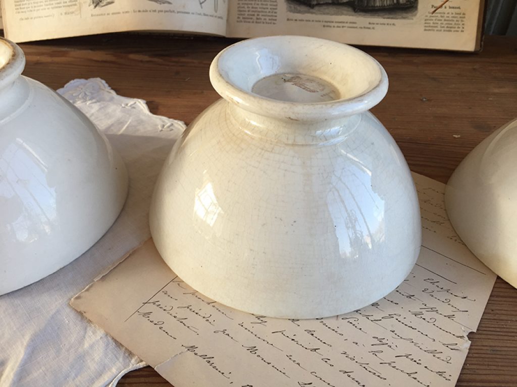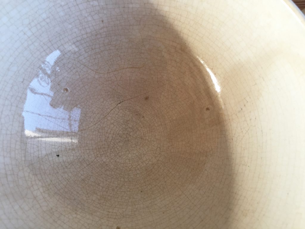 Trois anciens bols en faïence comportant quelques traces d’usage et jolie patine laissée par le temps. Fissures très superficielles à l’intérieur. Vendus séparément.