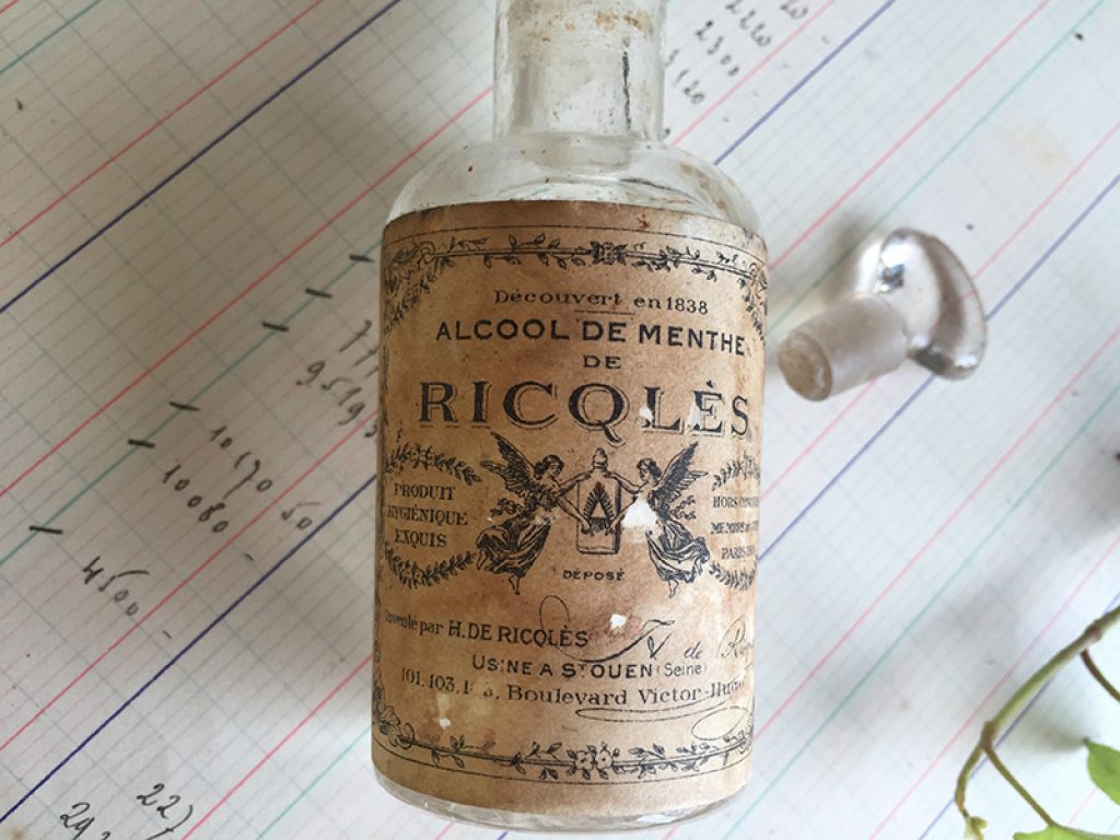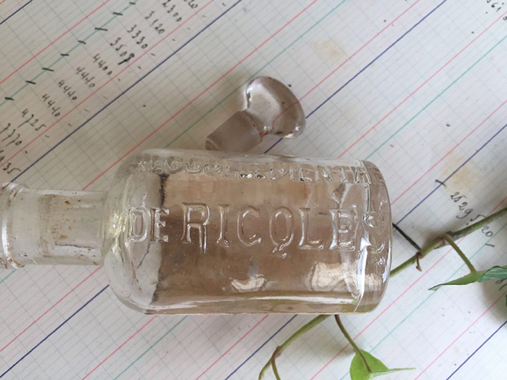 Petit flacon publicitaire ancien avec sa belle étiquette d’origine.