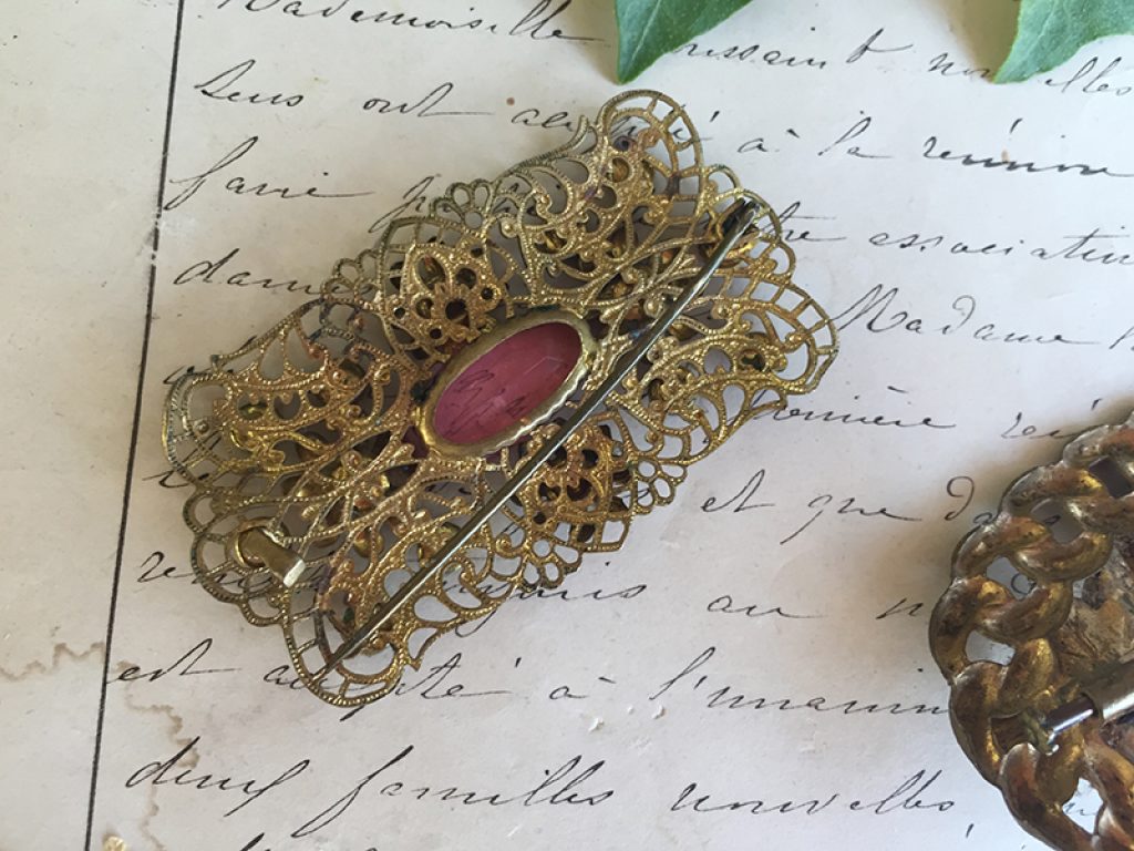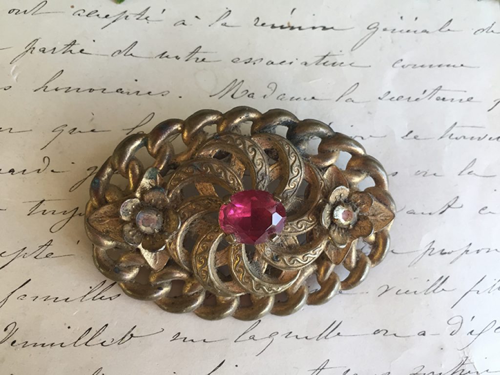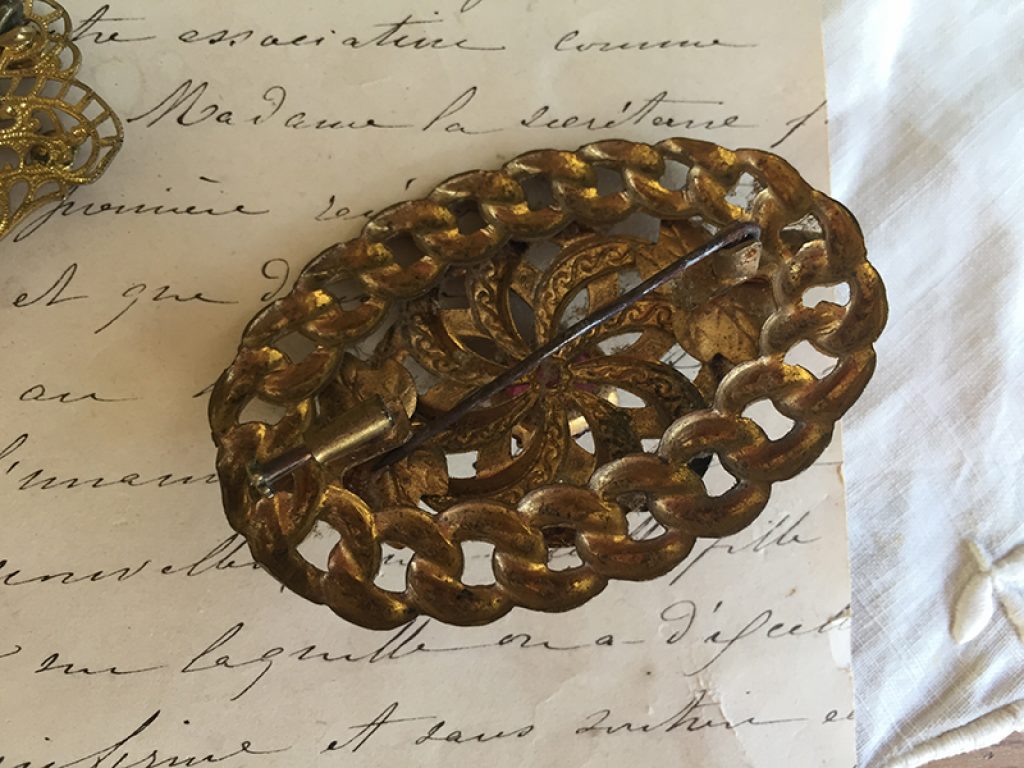 - A droite, ovale, fermoir de sécurité. 6 x 4 cm : 18 euros VENDUE