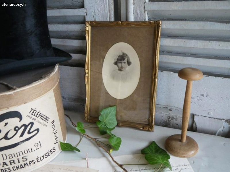 Charmant visage d’enfant pour cette ancienne photo retouchée, sous verre dans son cadre d’origine comportant quelques manques . A accrocher
