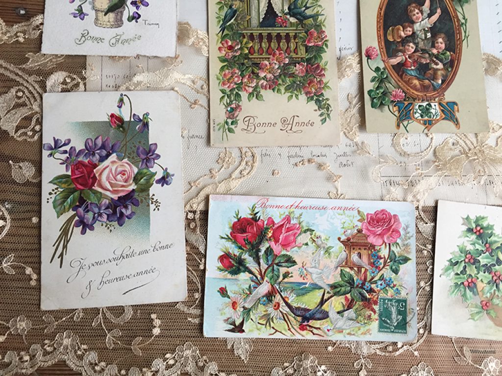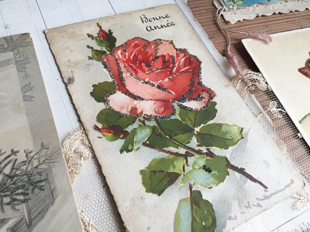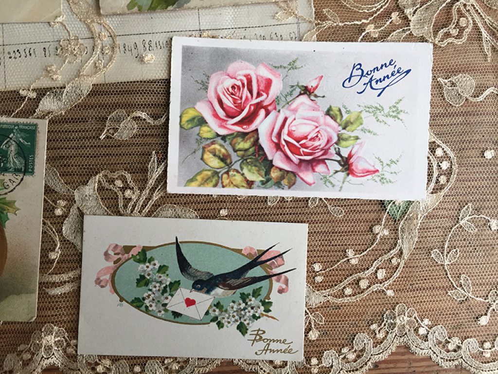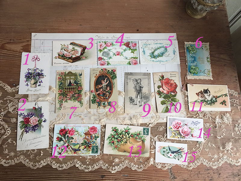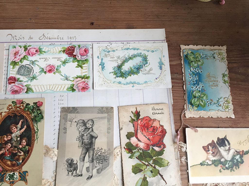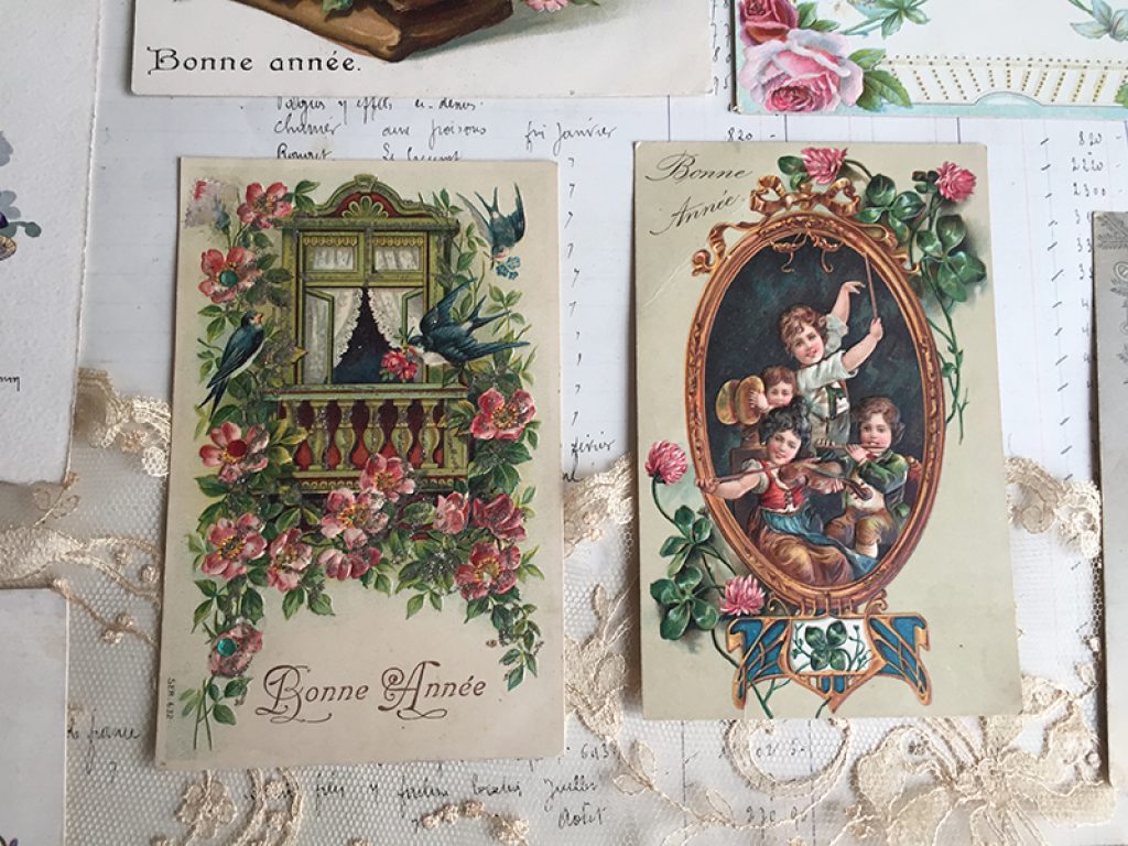 Anciennes cartes postales fantaisies, vendues à l’unité. N° 10 avec paillettes, n°6 forme livret