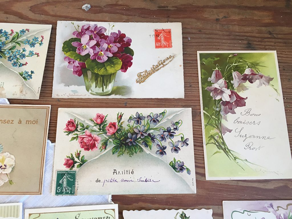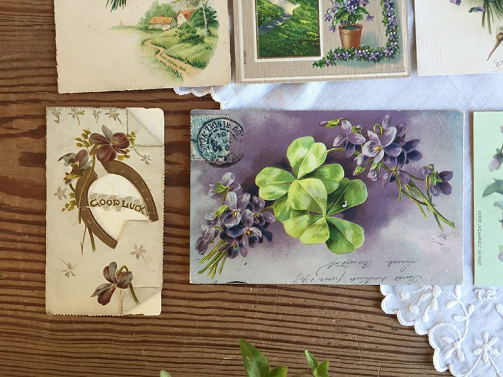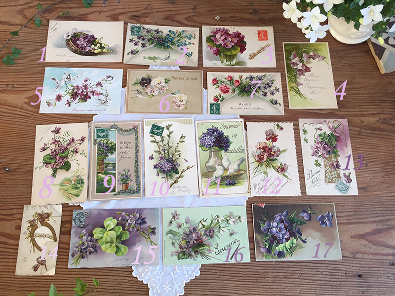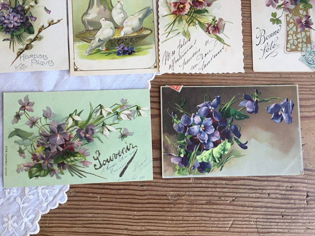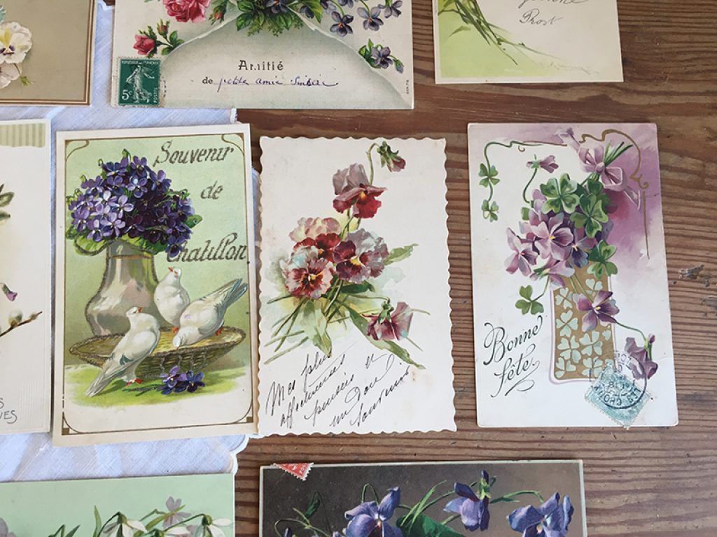 Anciennes cartes postales aux charmants décors de violettes, vendues séparément, parfaites pour attendre le printemps !