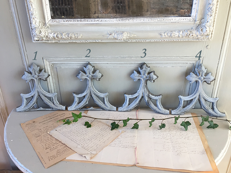 Quatre anciens éléments en zinc, vendus séparément. Fragilisés par le temps mais parfait en déco de charme.