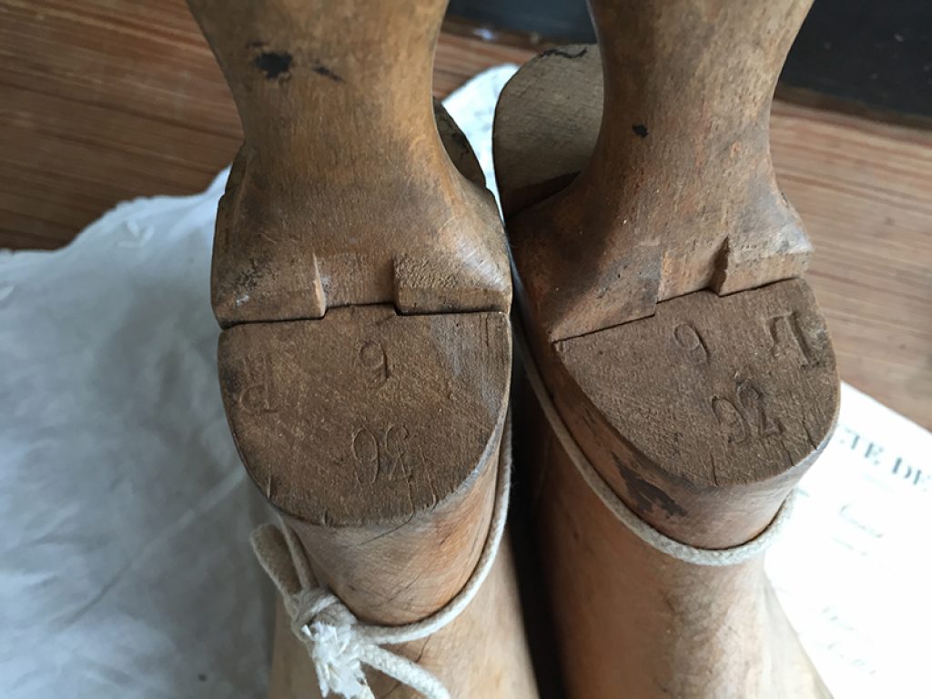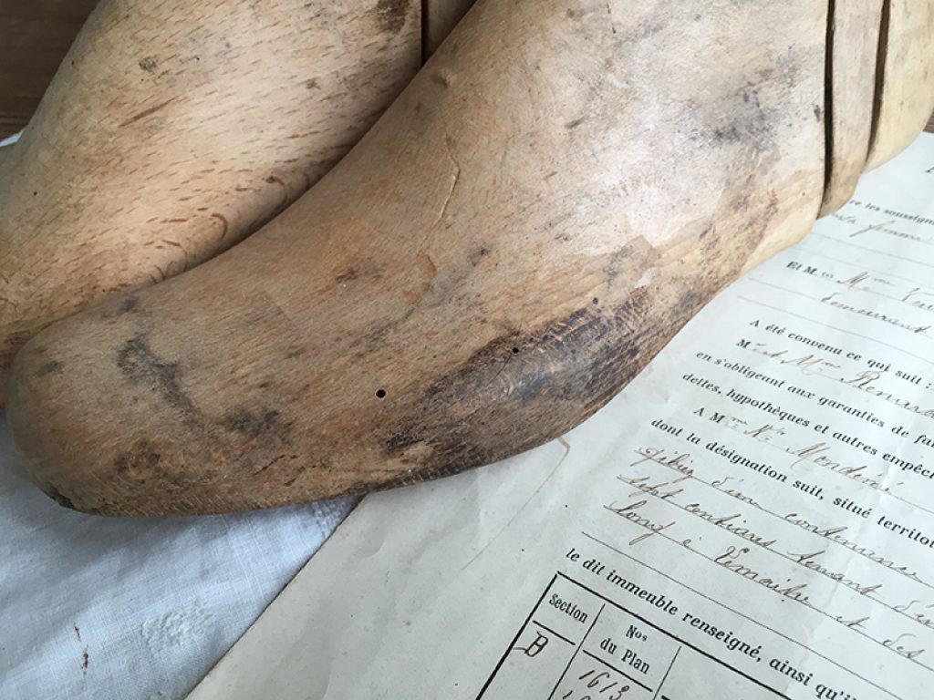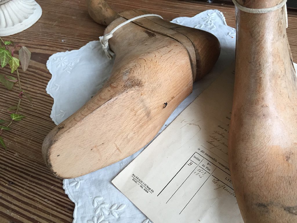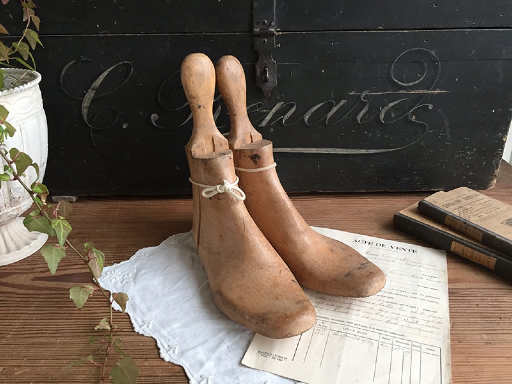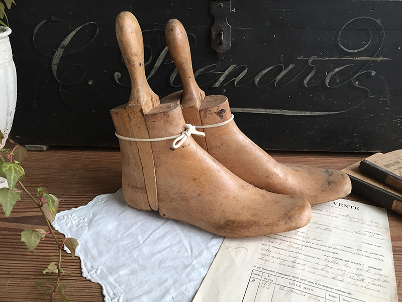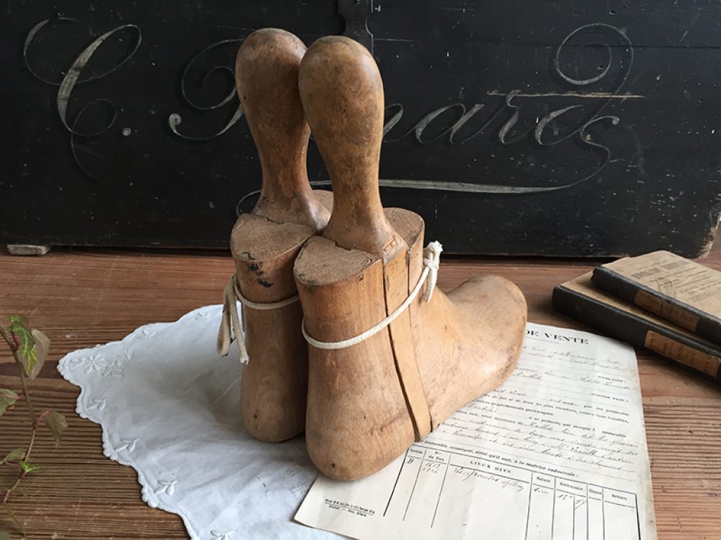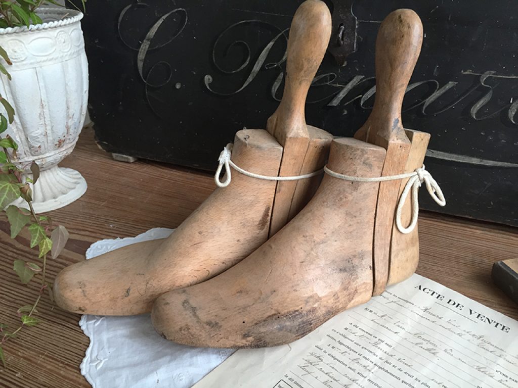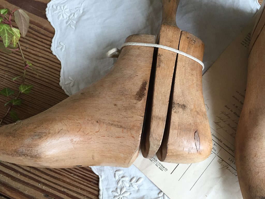 Anciens embauchoirs en bois pour bottines, en trois parties.