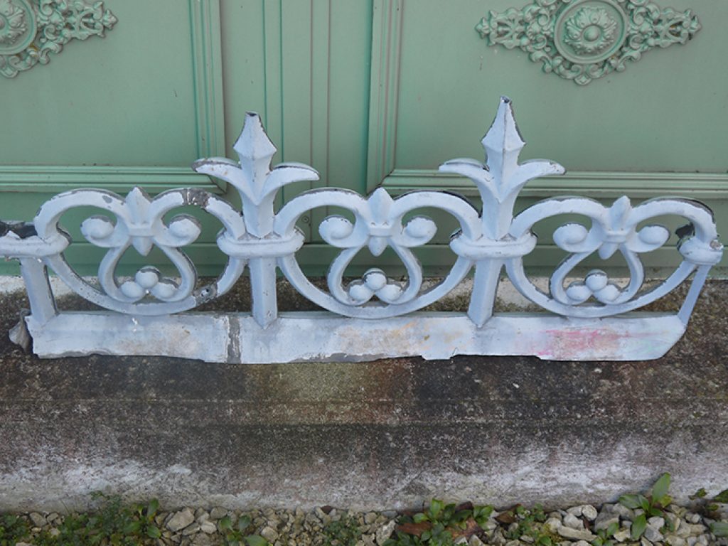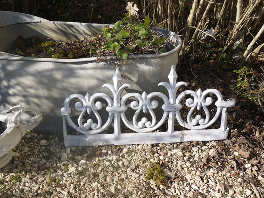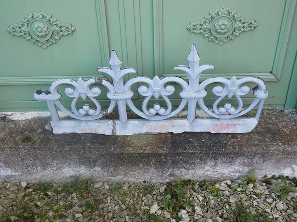 Ancienne frise de faîtage en zinc, très élégante et difficile à trouver. Convient pour la déco d’intérieur ou de jardin. Quelques endroits fragilisés par le temps. Pas d’envoi, à prendre sur place (89)