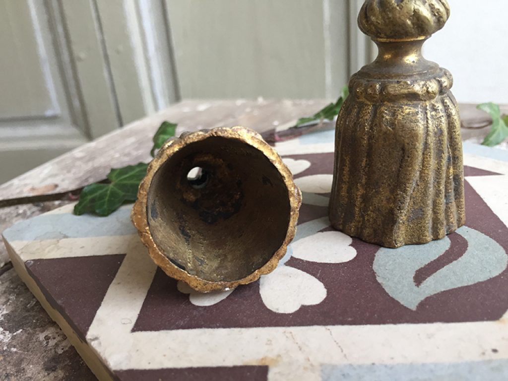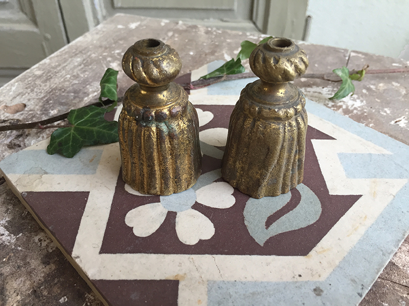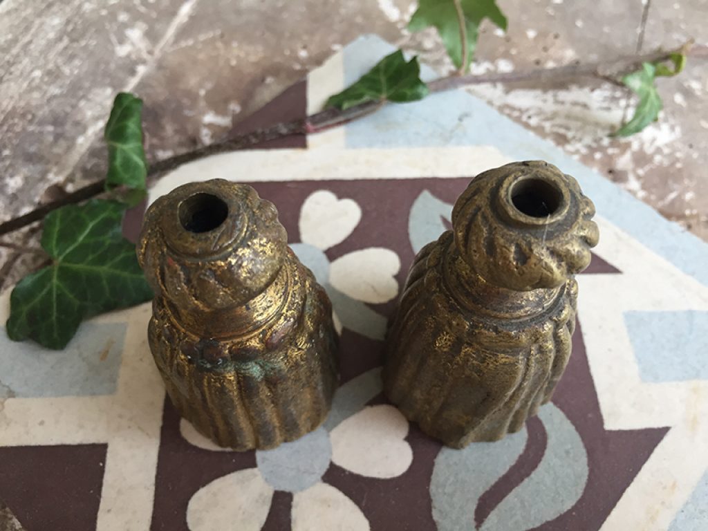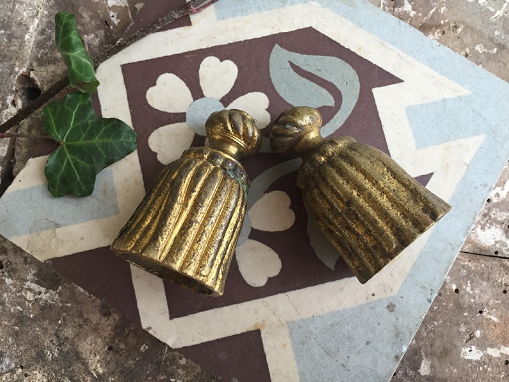 Lot de deux anciens glands en bronze qui servent de lests et d’embouts pour les cordons de rideaux ou stores. Utile et déco !