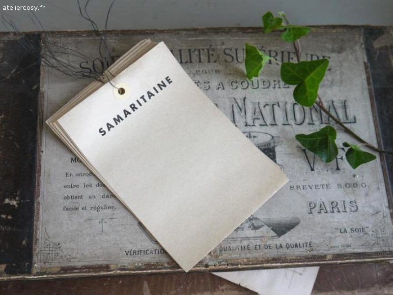 Grandes étiquettes anciennes en papier équipées d’un petit fil de fer pour l’accroche; Vendues par lot de cinq (3 euros ). 11 x 16 cm 6 lots disponibles