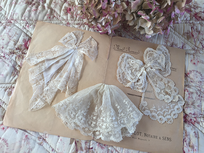 Trois anciens jabots en dentelle, vendus séparément. Pour déco de charme, parfaits au cou d’un mannequin.