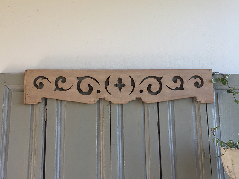 Quatre anciens lambrequins ou fronton en bois peint, avec jolies découpes. Vendus séparément.