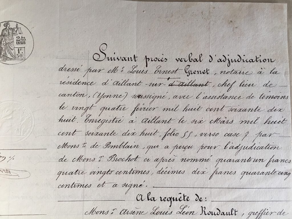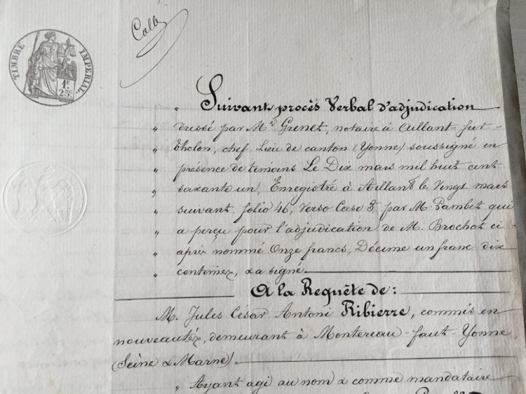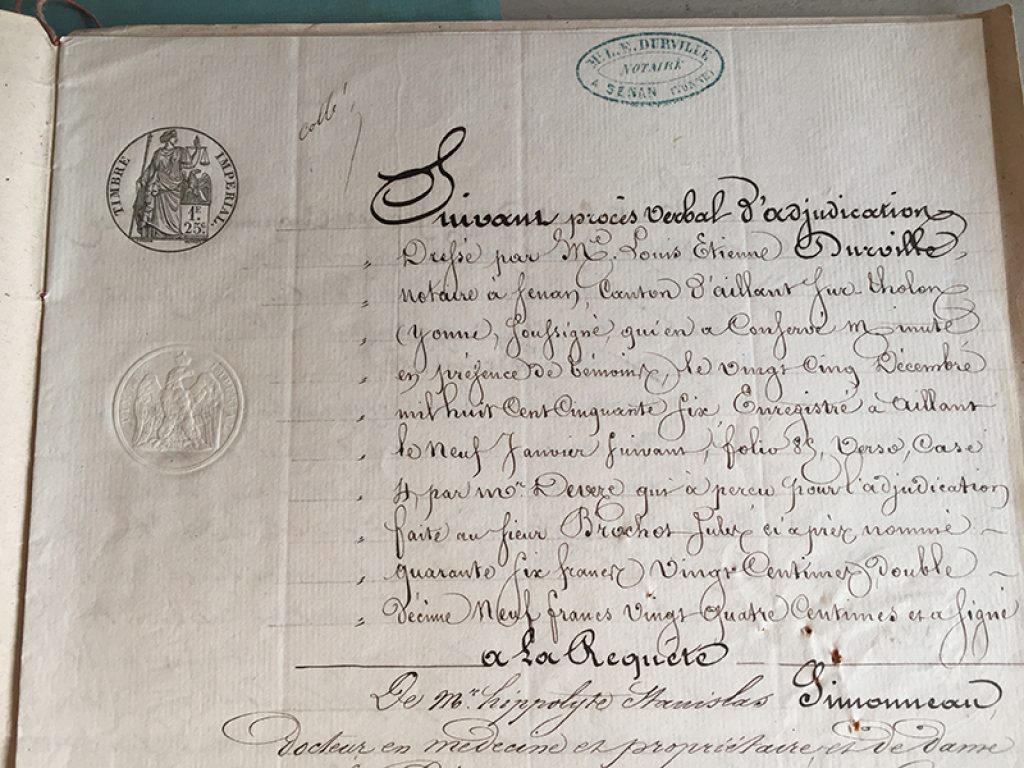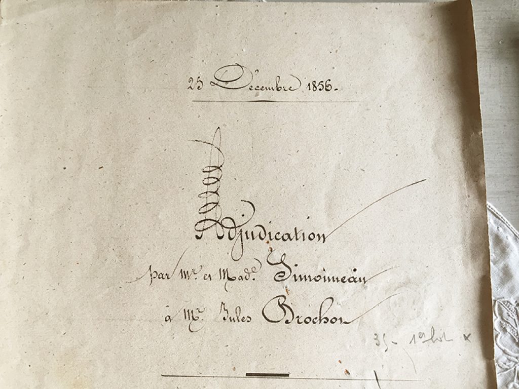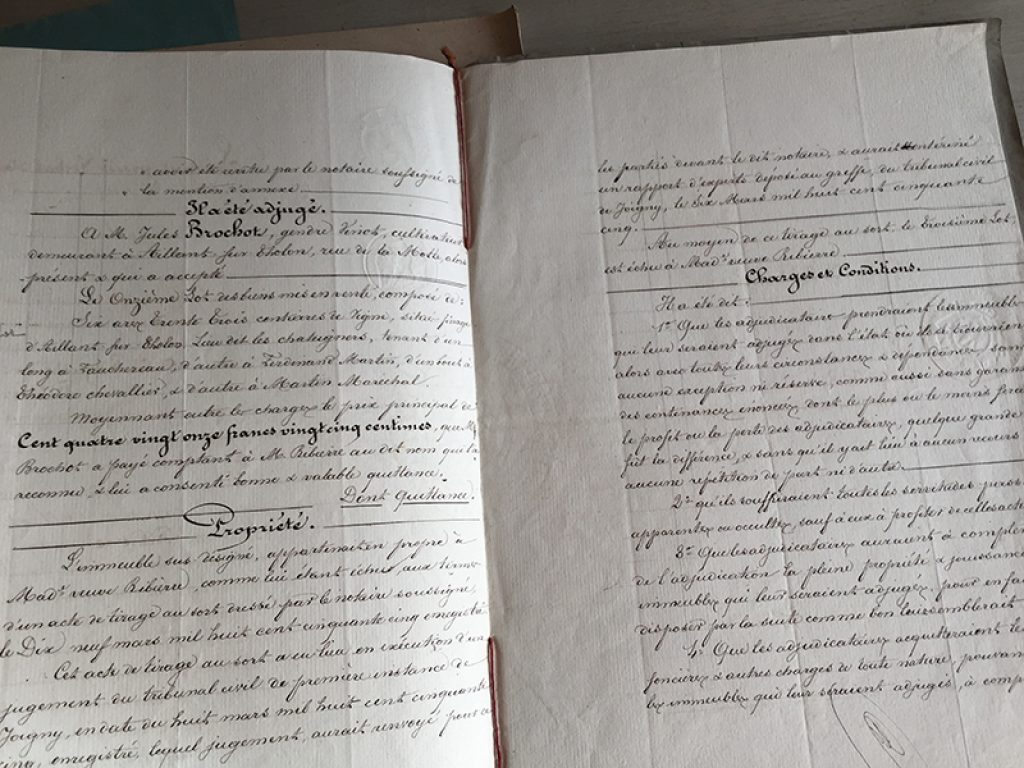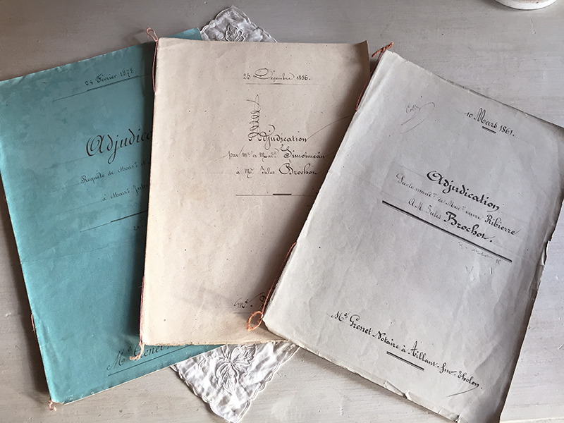 Lot de trois anciens actes notariés, datés de 1856, 1861 et 1878. Deux pages + couverture pour chacun. Belle écriture manuscrite, sans ratures !