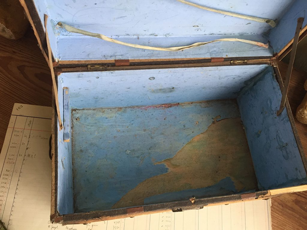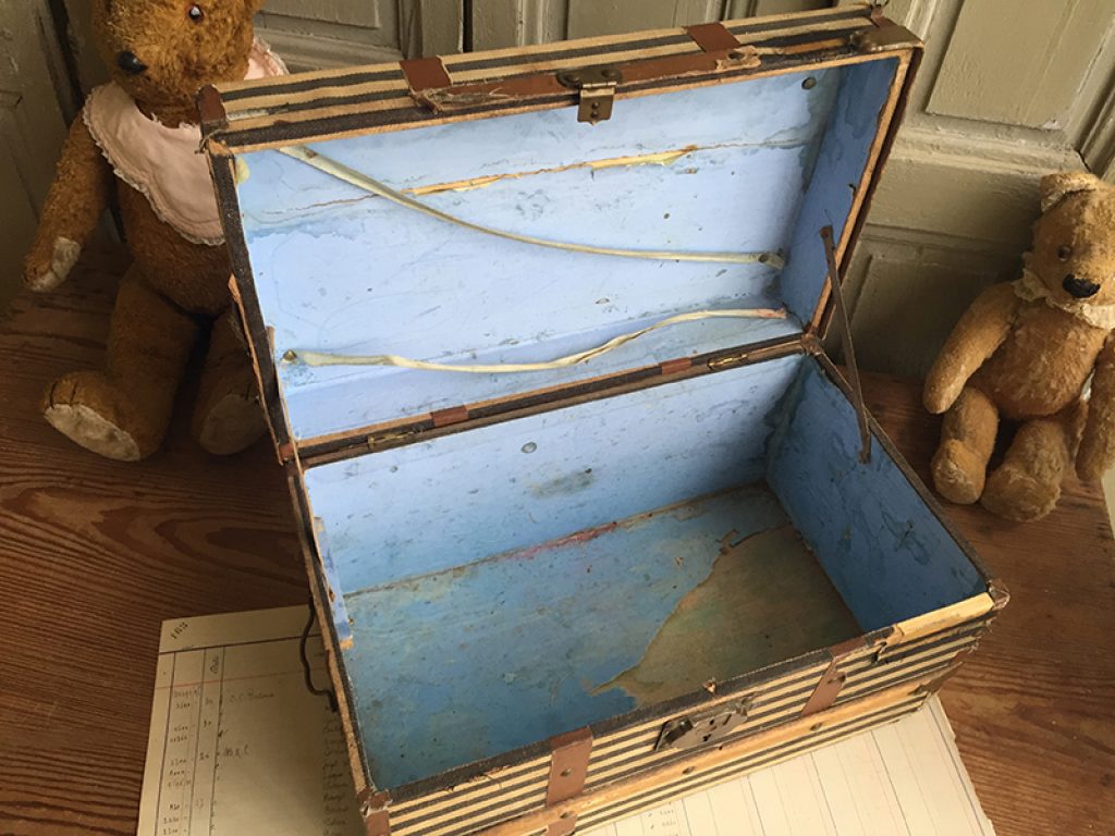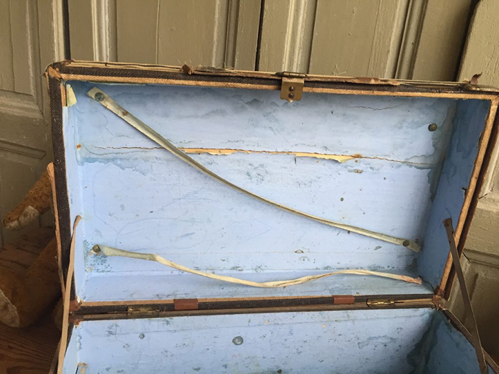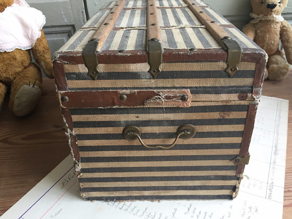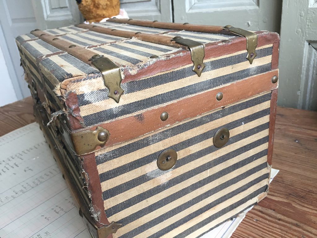 Adorable petite malle ancienne pour poupée, réplique exacte des grands modèles, comportant des manques et traces d’usage, mais devenue difficile à trouver ! manque une poignée sur un coté, pas de clé. Parfaite pour les rangements de petits vêtements ou mercerie.