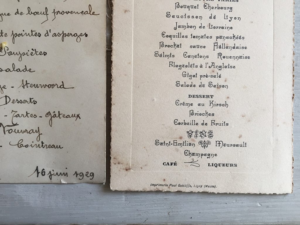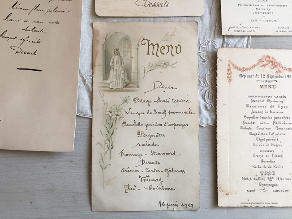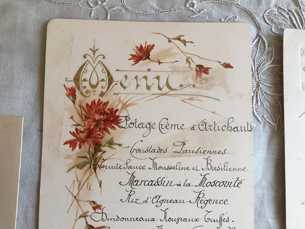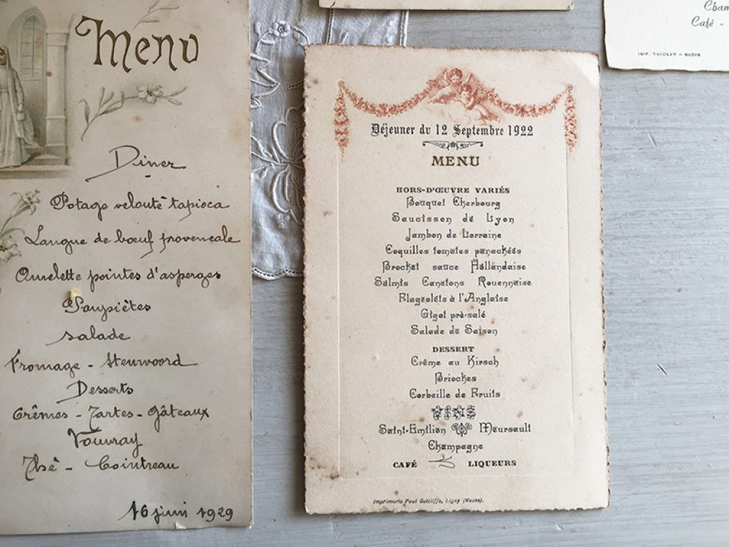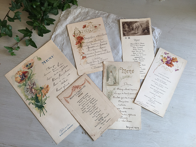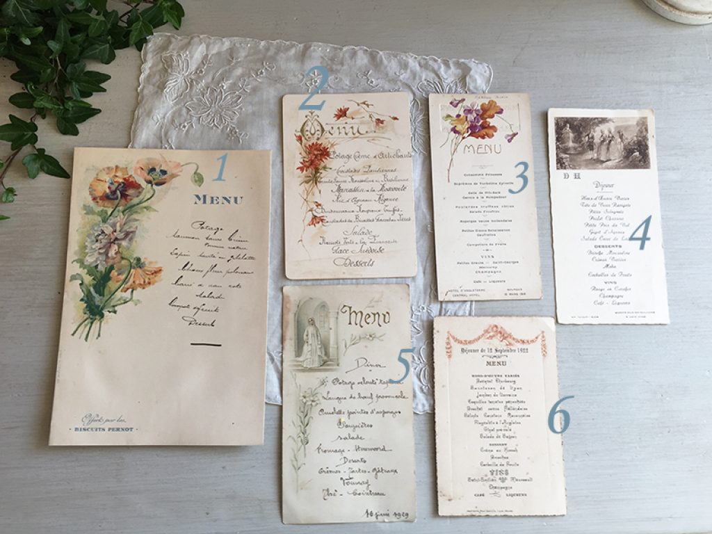 Six anciens menus, vendus séparément