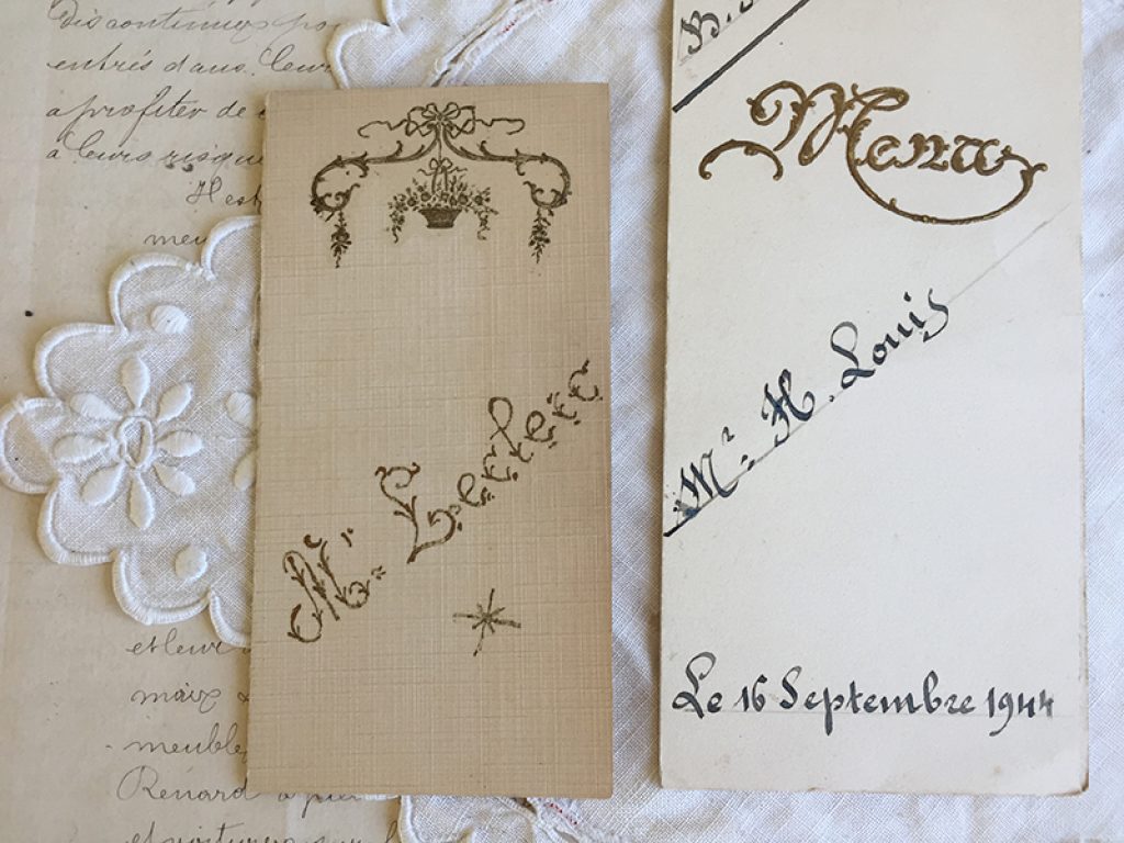 • Au centre, « Mr Louis  » 16 septembre 1944, manuscrit, 16 x 8 cm : 12 euros