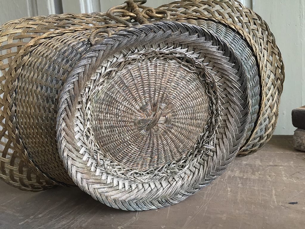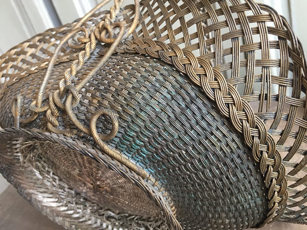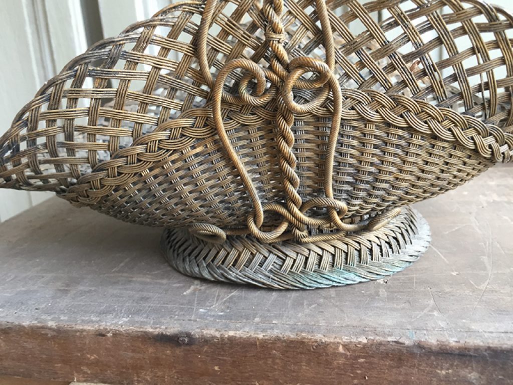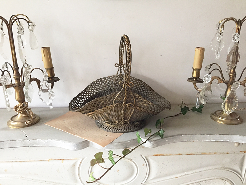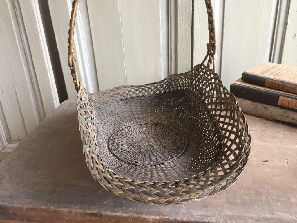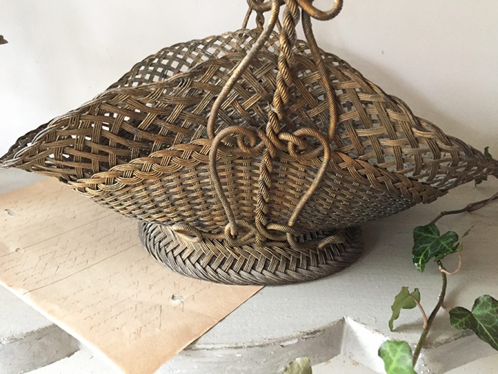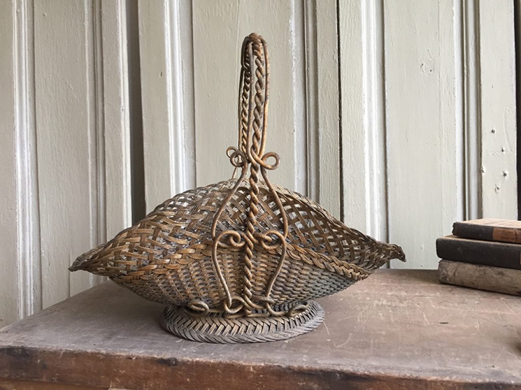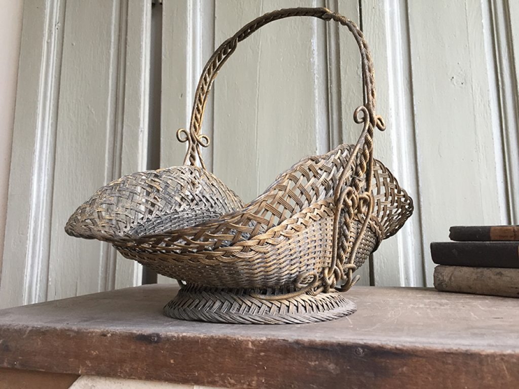 Elégant panier ancien en fil métallique, comportant quelques traces d’oxydation dues à son âge.