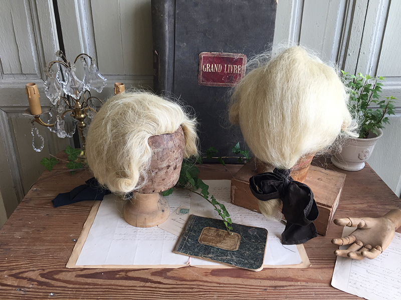 Deux anciennes perruques de théâtre pour homme, vendues séparément. Etiquette à l’intérieur  » René Cros Perruques Beziers «