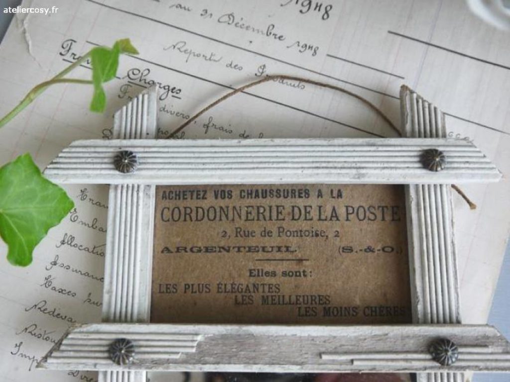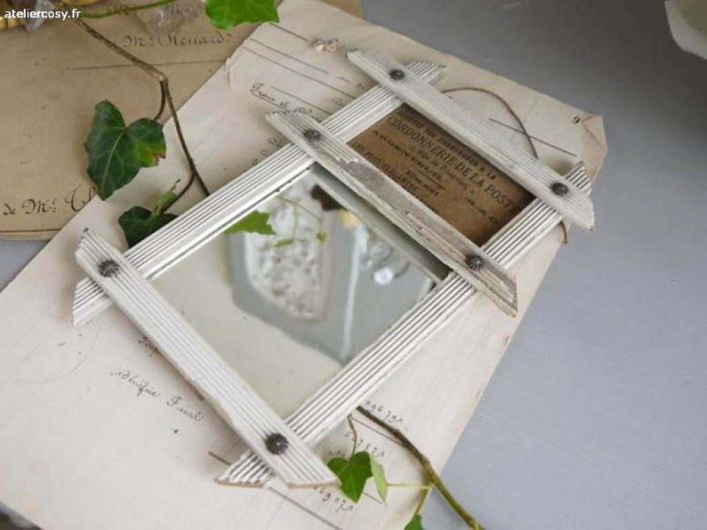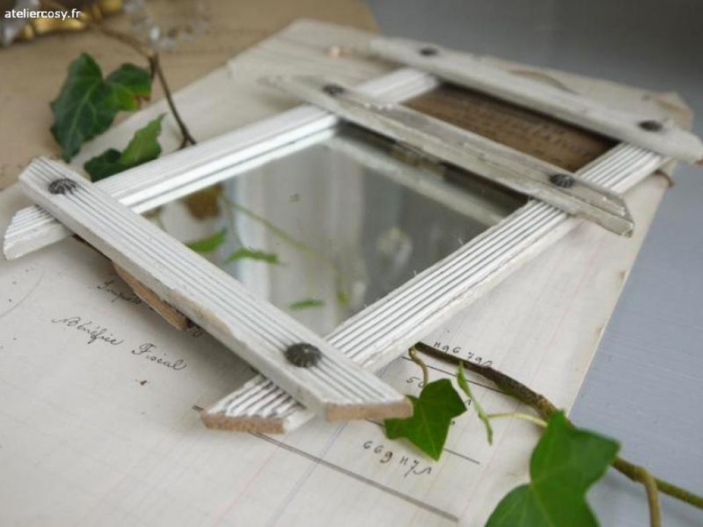 Ravissant petit miroir ancien et sa publicité cartonnée d’origine, à accrocher. Petits manques sur la baguette. 23 x 15 cm Miroir 8.5 x 10 cm