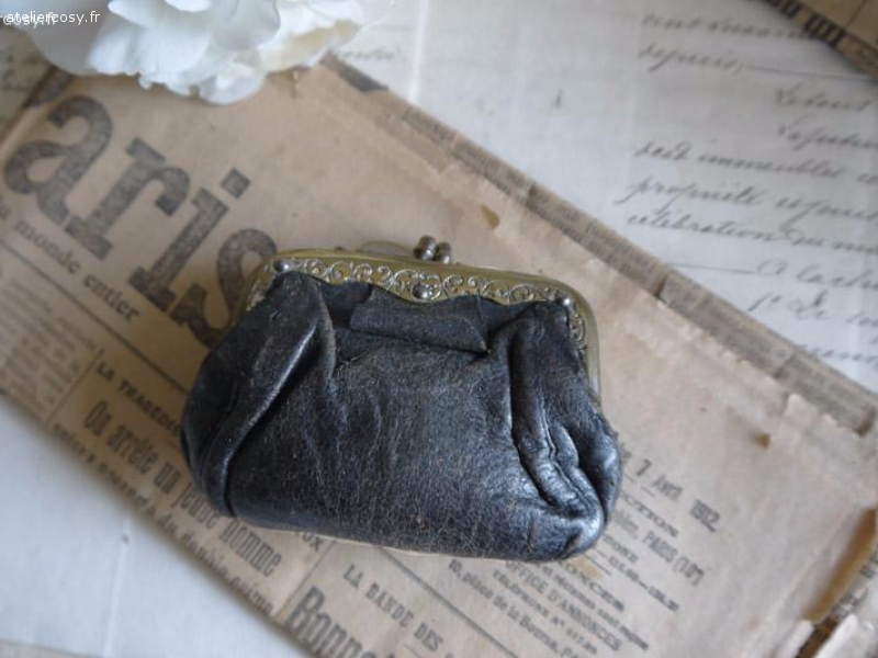 Porte monnaie ancien en cuir, trois compartiments, pour les petits sous ! 9 x 6 cm