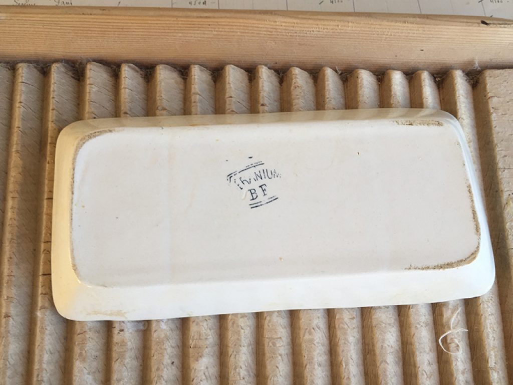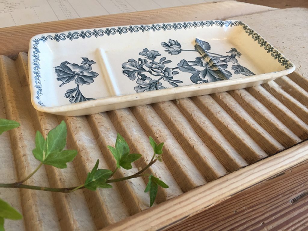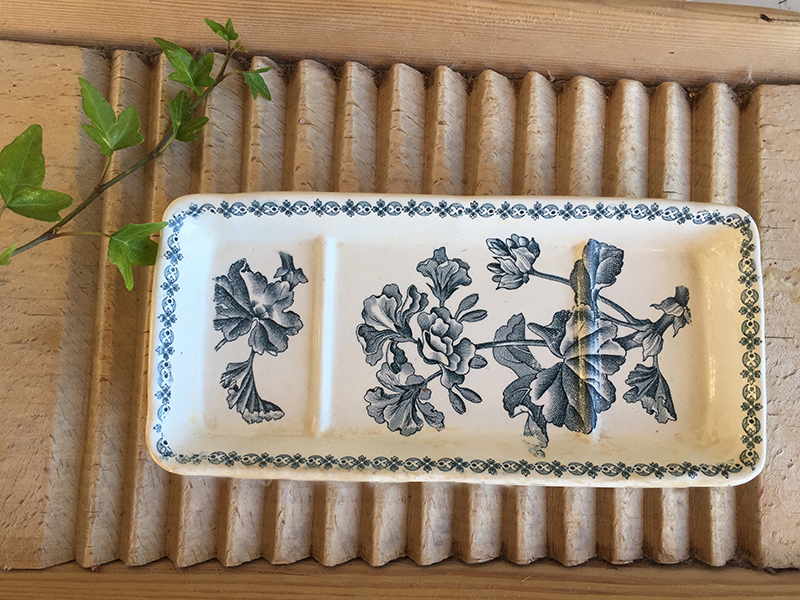 Ancien porte savon ou peigne en faïence, au joli décor de fleurs bleues. Bon état général.