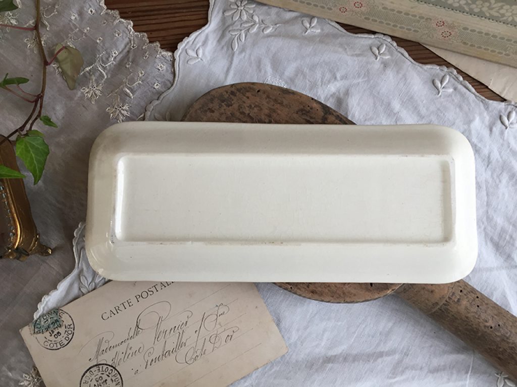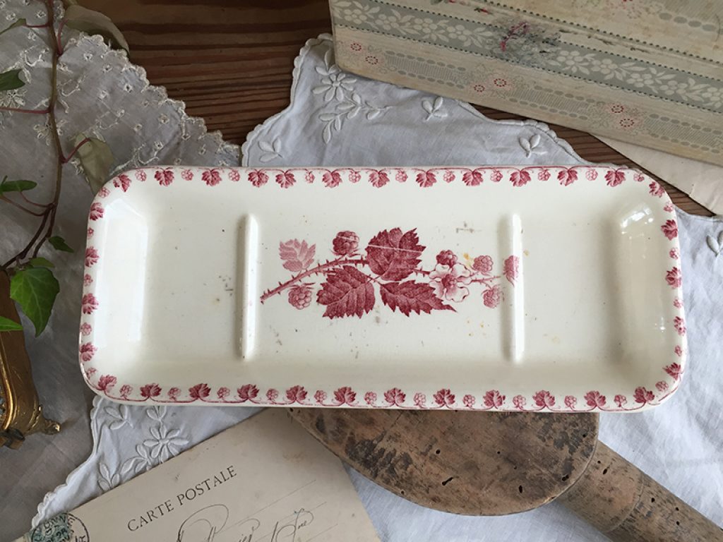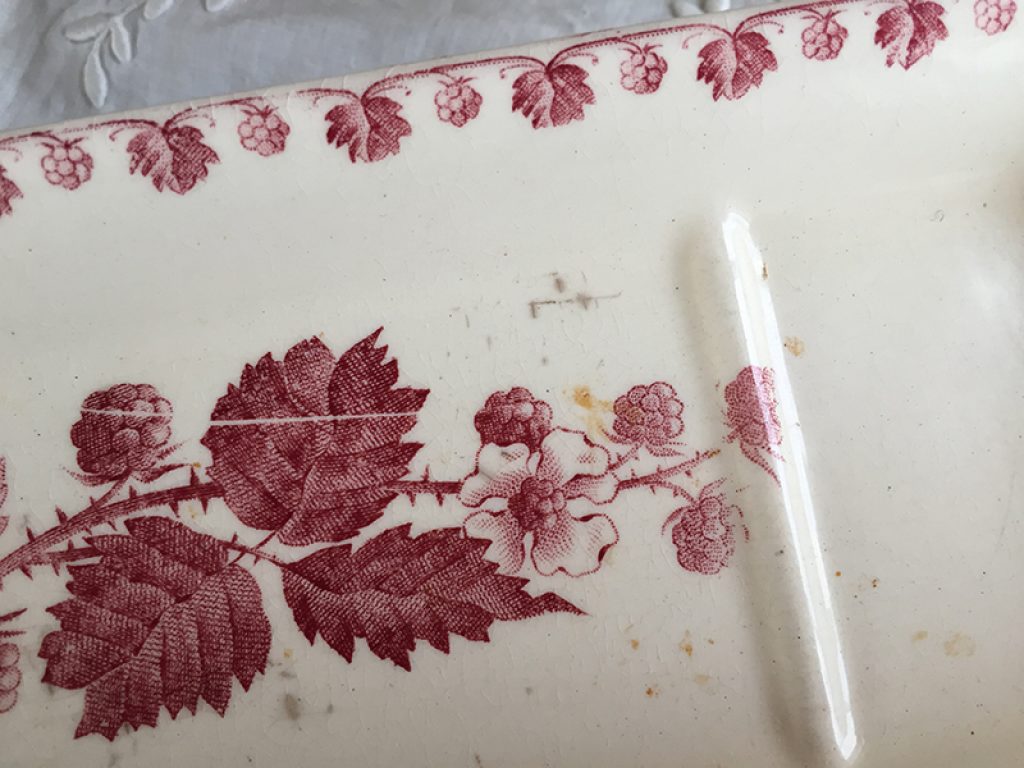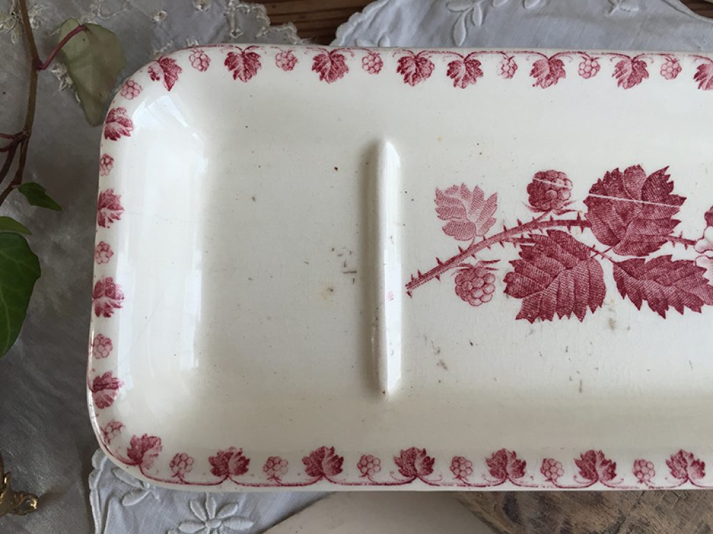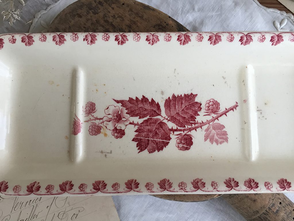 Joli porte savon ou peigne ancien en faïence, avec joli décor de mures. Petites traces d’usage mais bon état général.