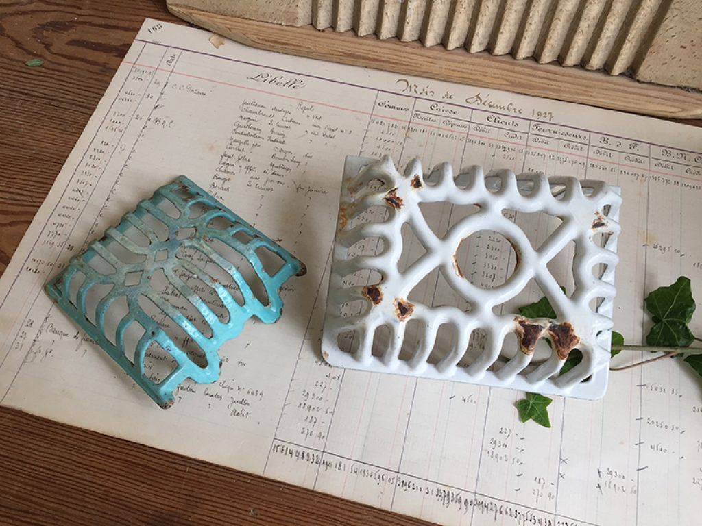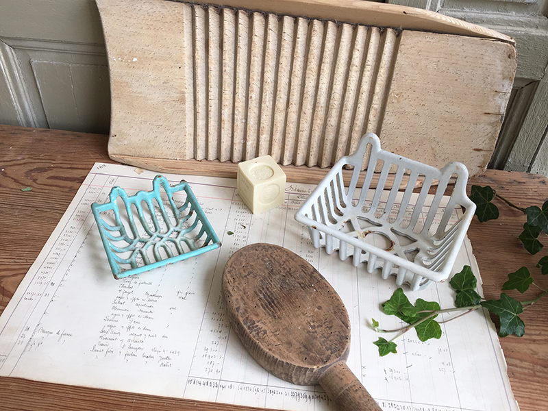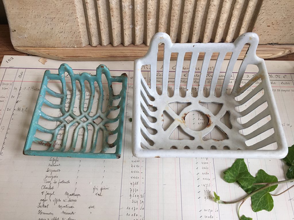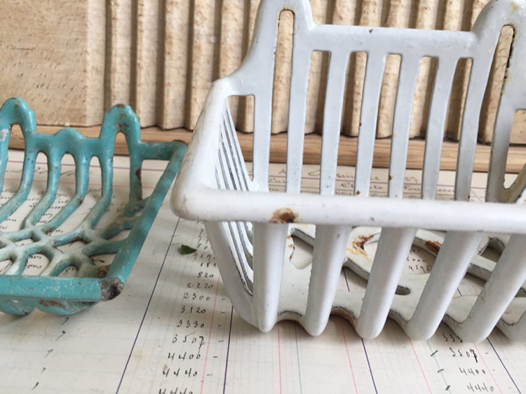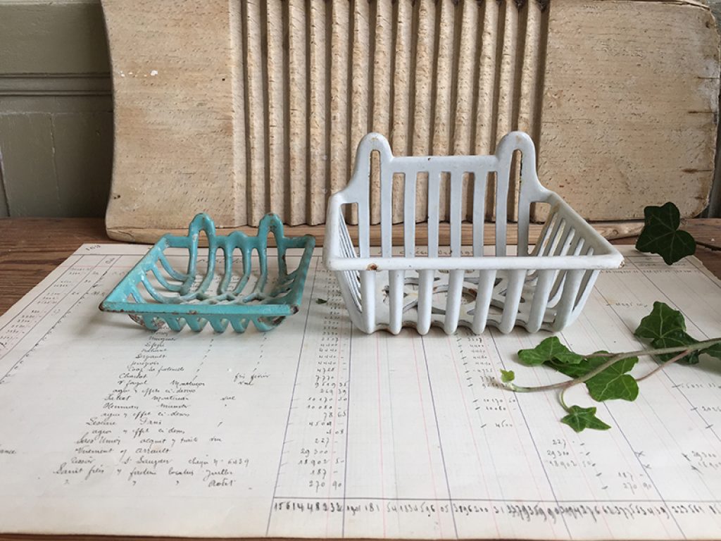 Deux anciens porte savons émaillés, comportant des traces de rouille, vendus séparément :