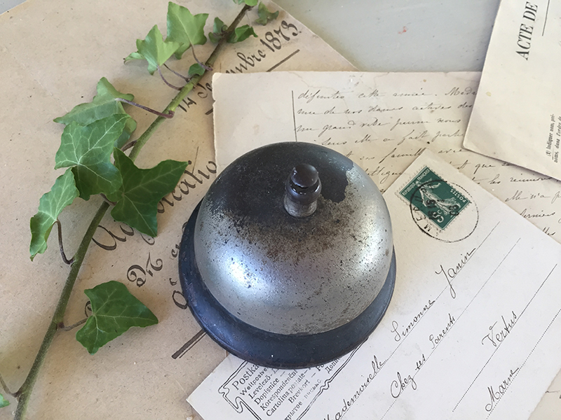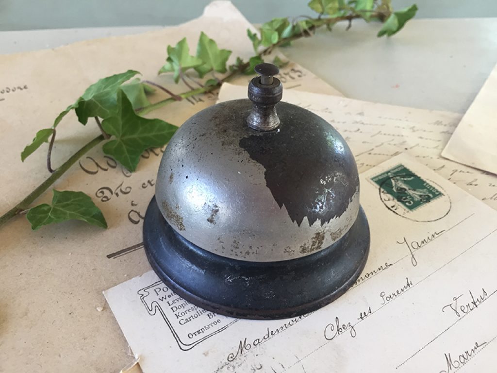 Ancienne sonnette de commerce en métal, comportant quelques traces d’usage mais qui fonctionne encore très bien.