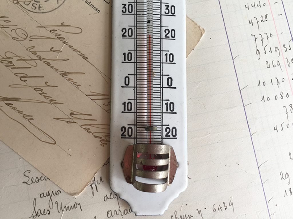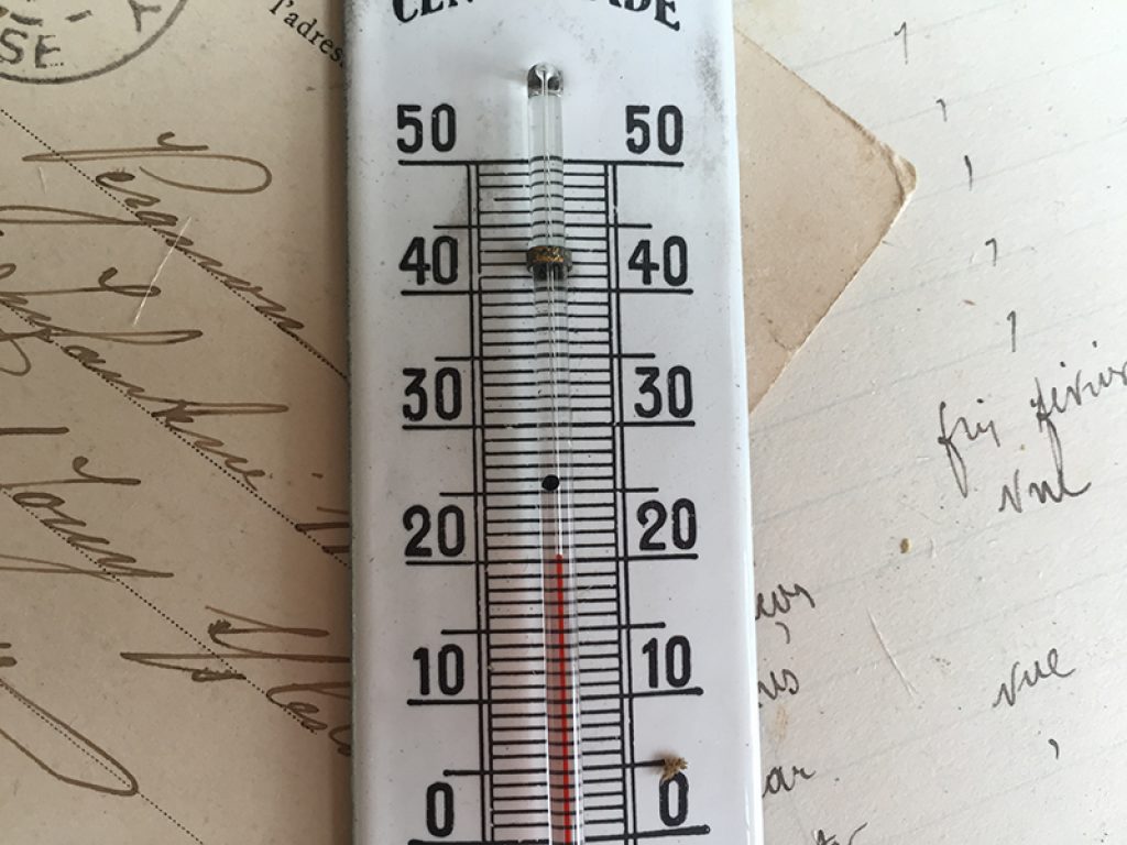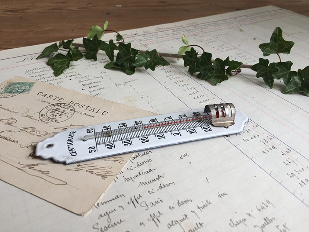 Ancien thermomètre sur plaque émaillée, qui pourra encore parfaitement assumer sa fonction. Utile et déco à la fois !
