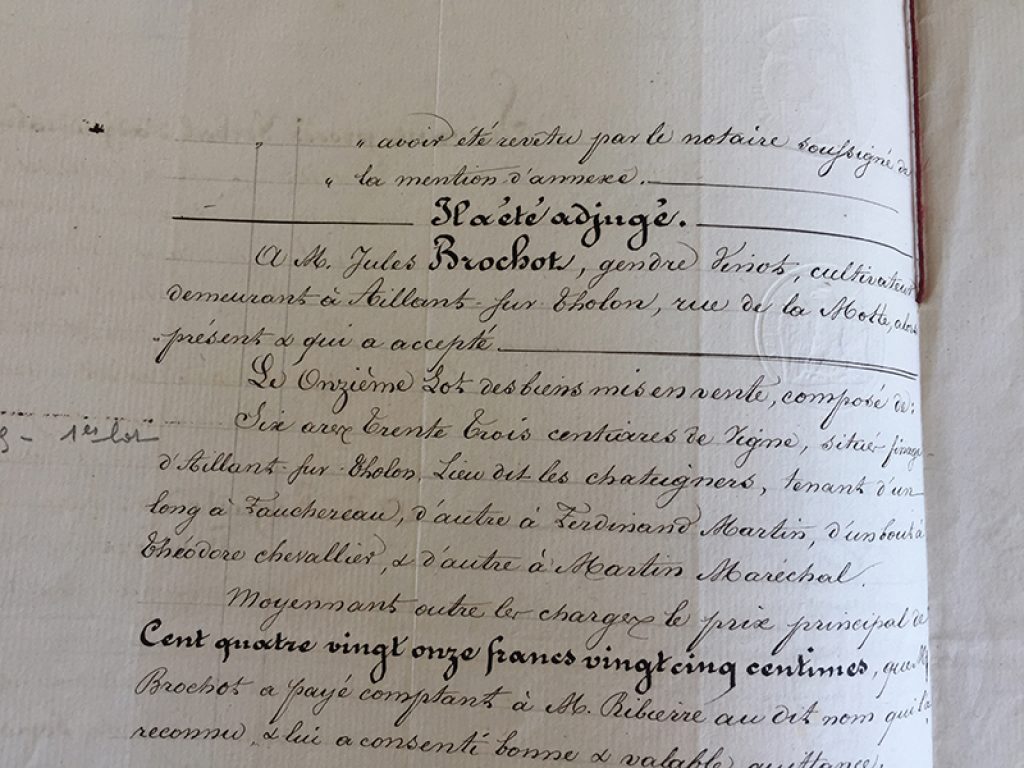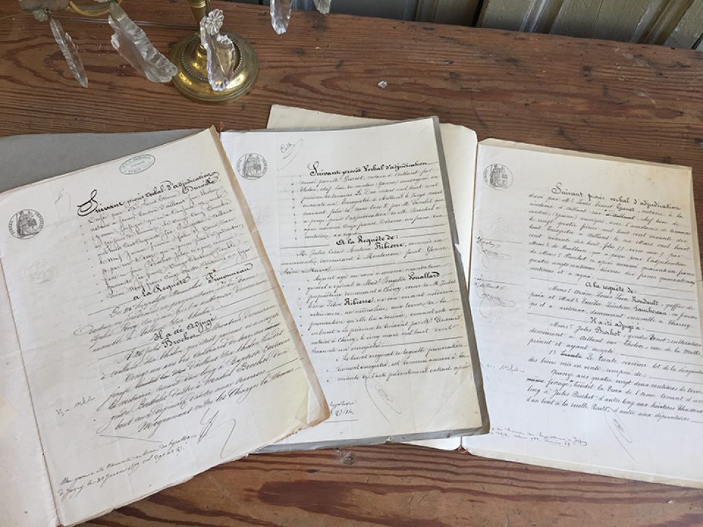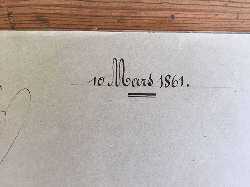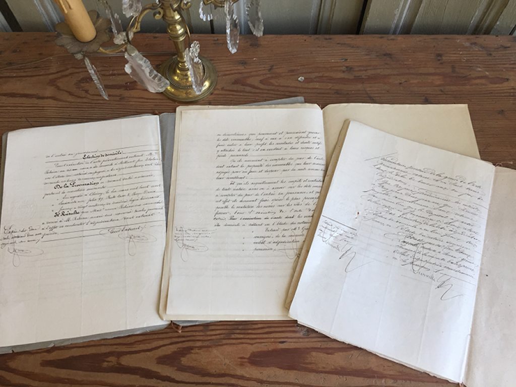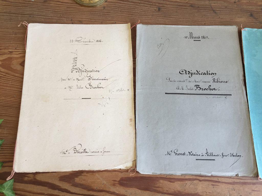 Lot de trois anciens documents manuscrits écrits à la plume, datés de 1856, 1861, et 1878.