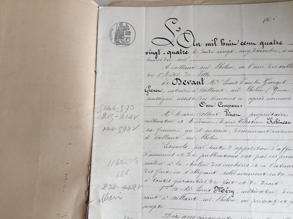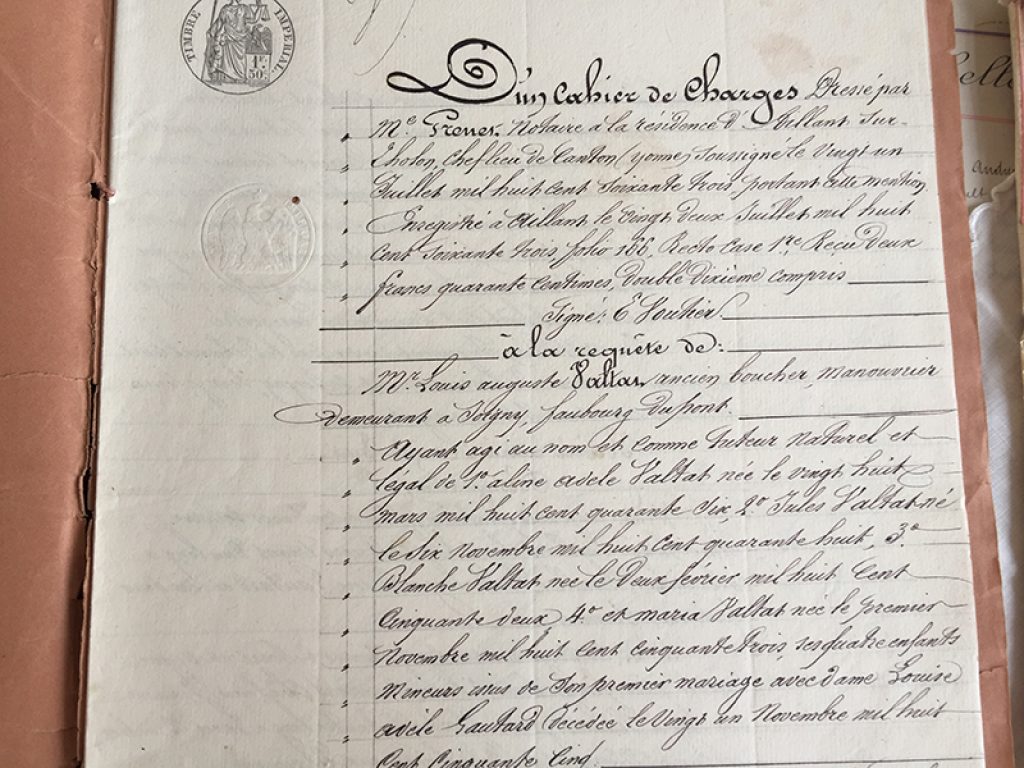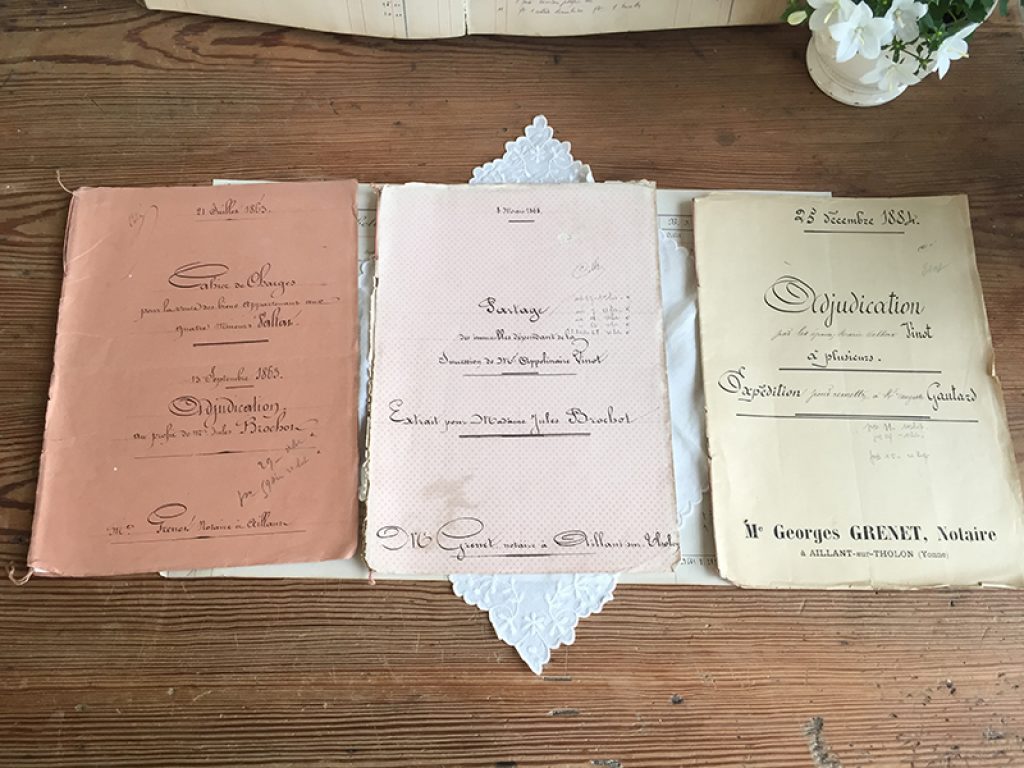 Lot de trois anciens documents manuscrits écrits à la plume, datés de 1863, 1868, et 1884.